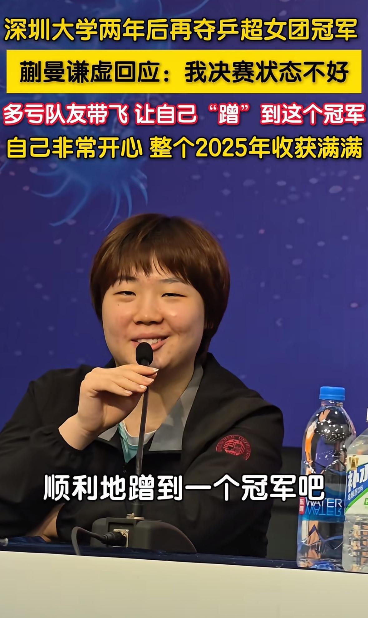 深圳大学夺冠后去吃庆功宴——孙颖莎如果在场气氛更愉快 深圳大学3:1山东鲁能夺得2025 赛季乒超联赛冠军, 意外之喜啊, 颁奖典礼结束后, 深圳大学俱乐部出来吃庆功宴啦, 深圳大学俱乐部拿下冠军🏆, 离不开每一个人的付出, 上场的在拼, 没上场的在撑, 状态好的在冲, 状态不好的也在扛, 正如孙颖莎说的, 一个人走不远, 一群人才能走得更远! 这次决赛, 深圳大学用团结一心证明了这句话, 冠军属于整个队伍, 每一个人!
