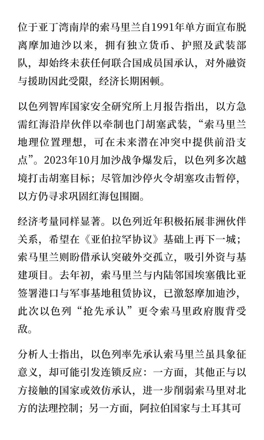 以色列承认索马里兰,要跟台当局一起搞分裂,美国都不敢这么整据外媒报道,12月