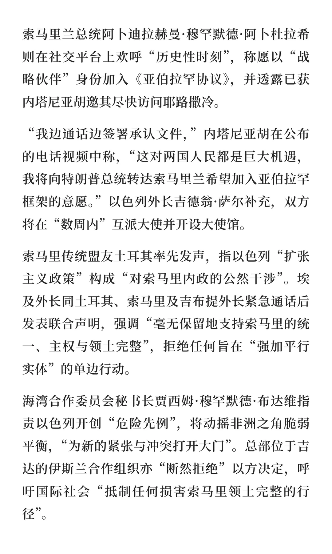 以色列敢为天下先!12月26日,内塔尼亚胡一声令下,以色列成了全球首个承认索马