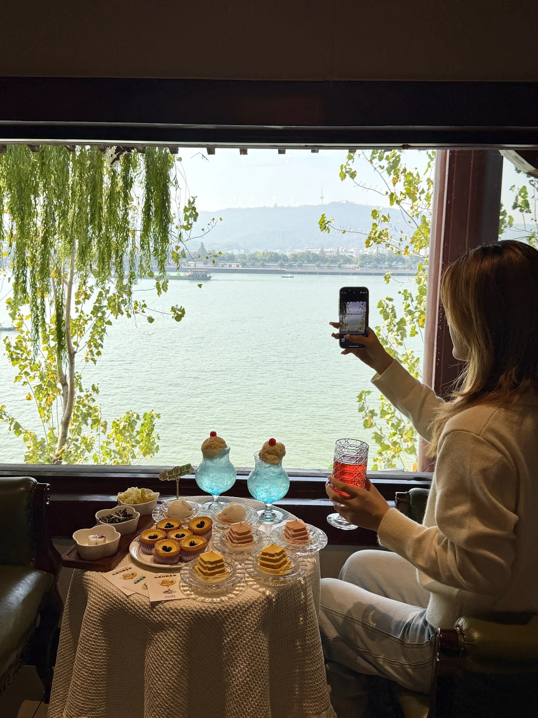 进门前没想到会这么好看!直到我看到窗边的景色……被惊艳到了🥹🥹原图live图随手拍都好美啊! 窗外就是橘子洲,岳麓山,旁边是杜甫江阁……柳树、湖畔小院一步一景!仿佛来到了苏州,还有漂亮小甜品吃氛围感好绝!天气好和朋友们坐在这里赏湖景,吃饭也太惬意了(涂氏小杯茶) 长沙打卡 长沙拍照 长沙约会 长沙本地人推荐 长沙美食 长沙宴请 长沙湘菜 长沙旅游攻略 生日餐厅 周末去哪儿
