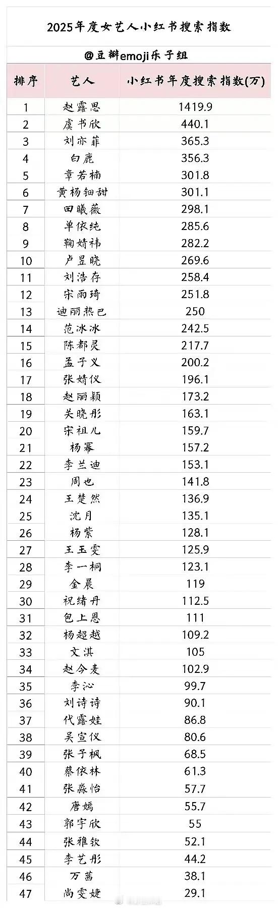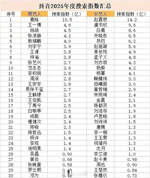 2025年抖指、微指、小红书搜索指数排名一览赵露思 肖战 鹿晗 王一博 都好牛