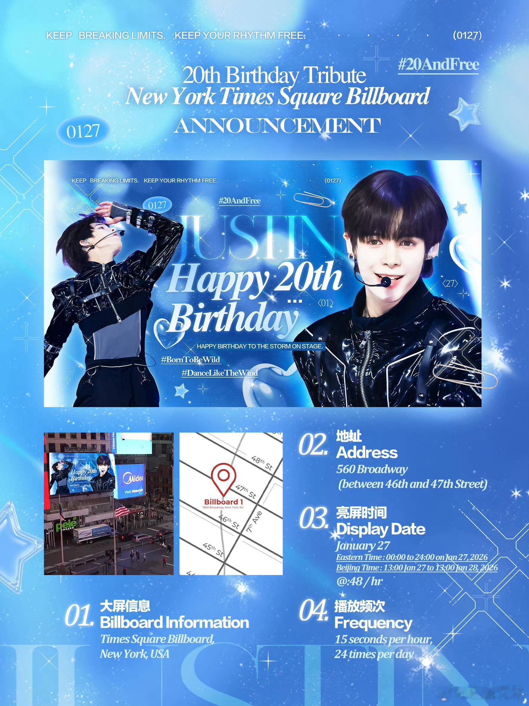 SMTR25练习生JayJay中粉为JayJay做了美国纽约时代广场生日应援