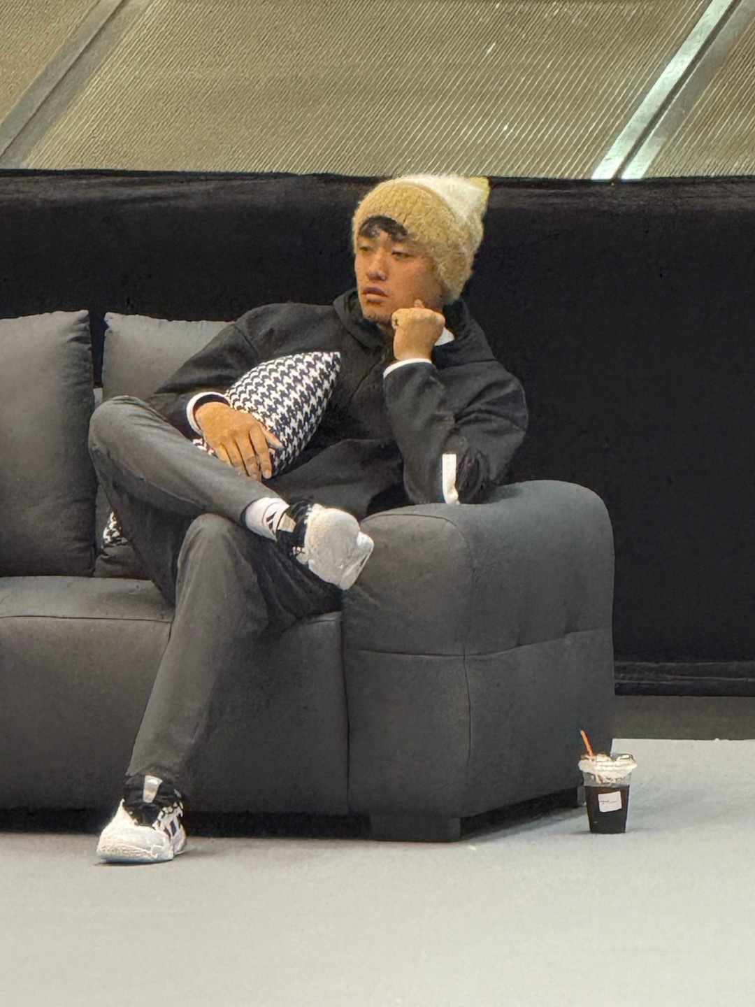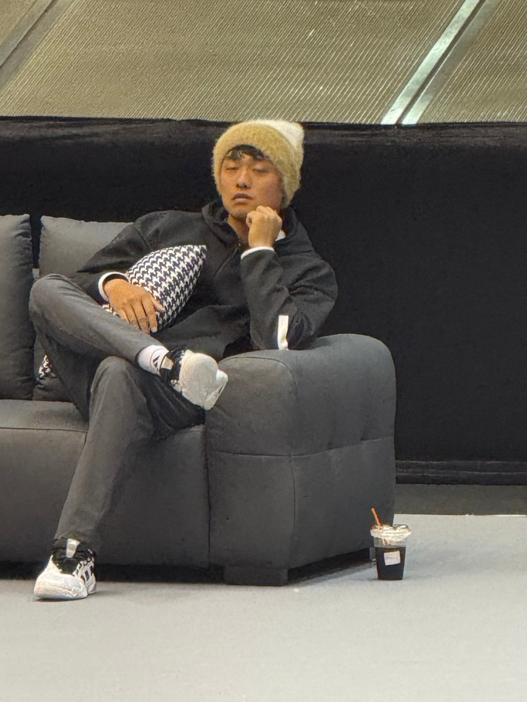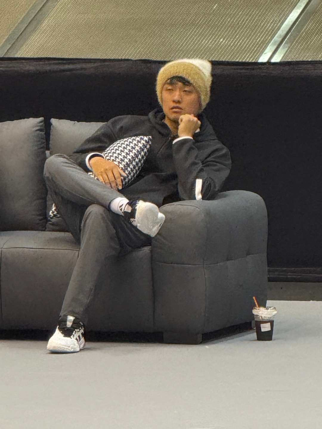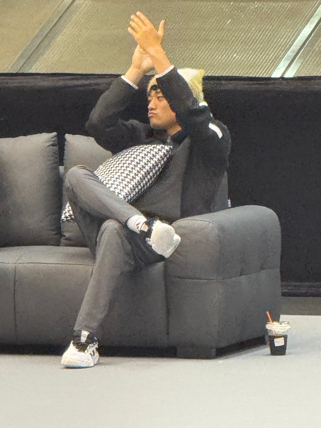 阿昺在沙发上葛优躺,很像赛事吉祥物