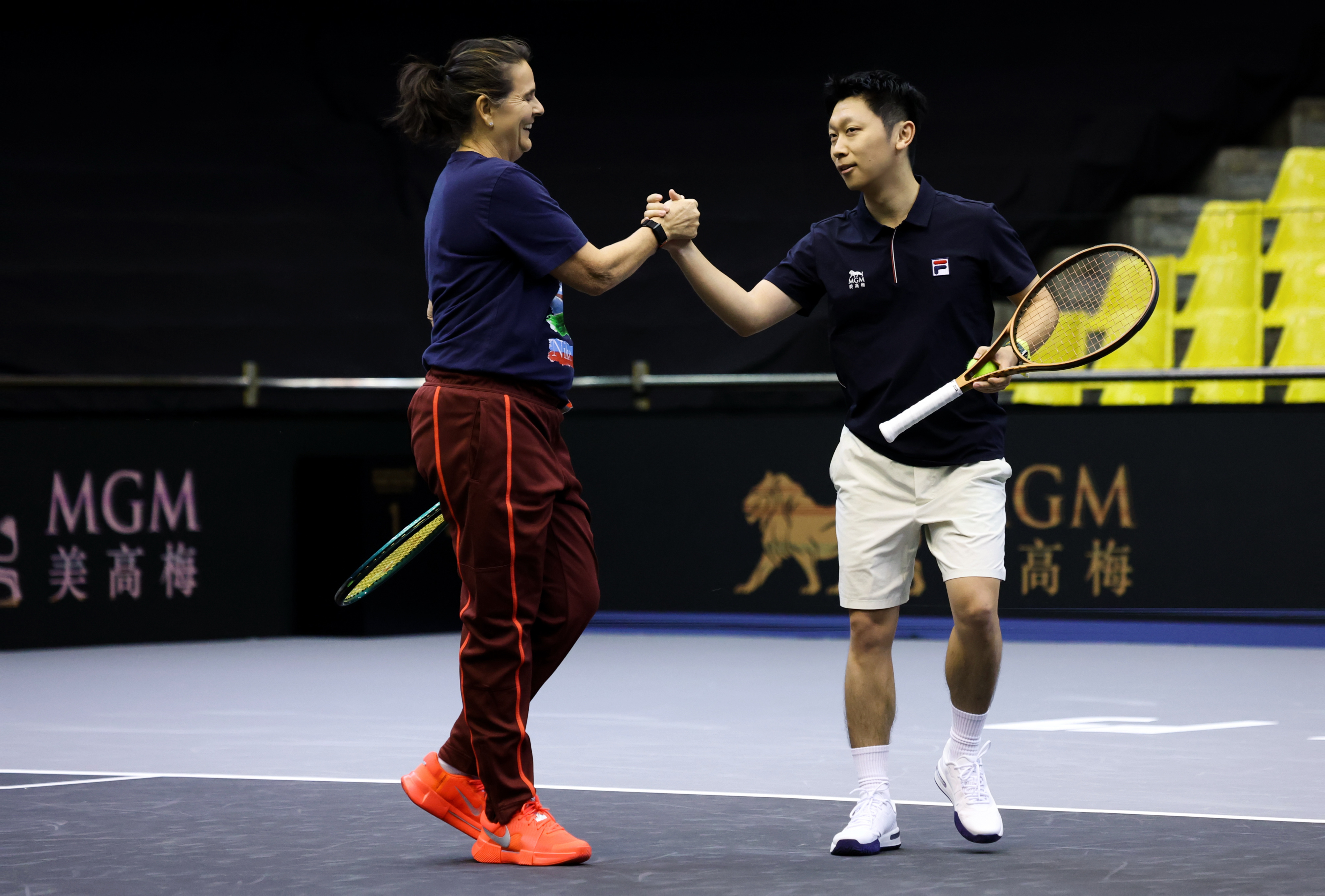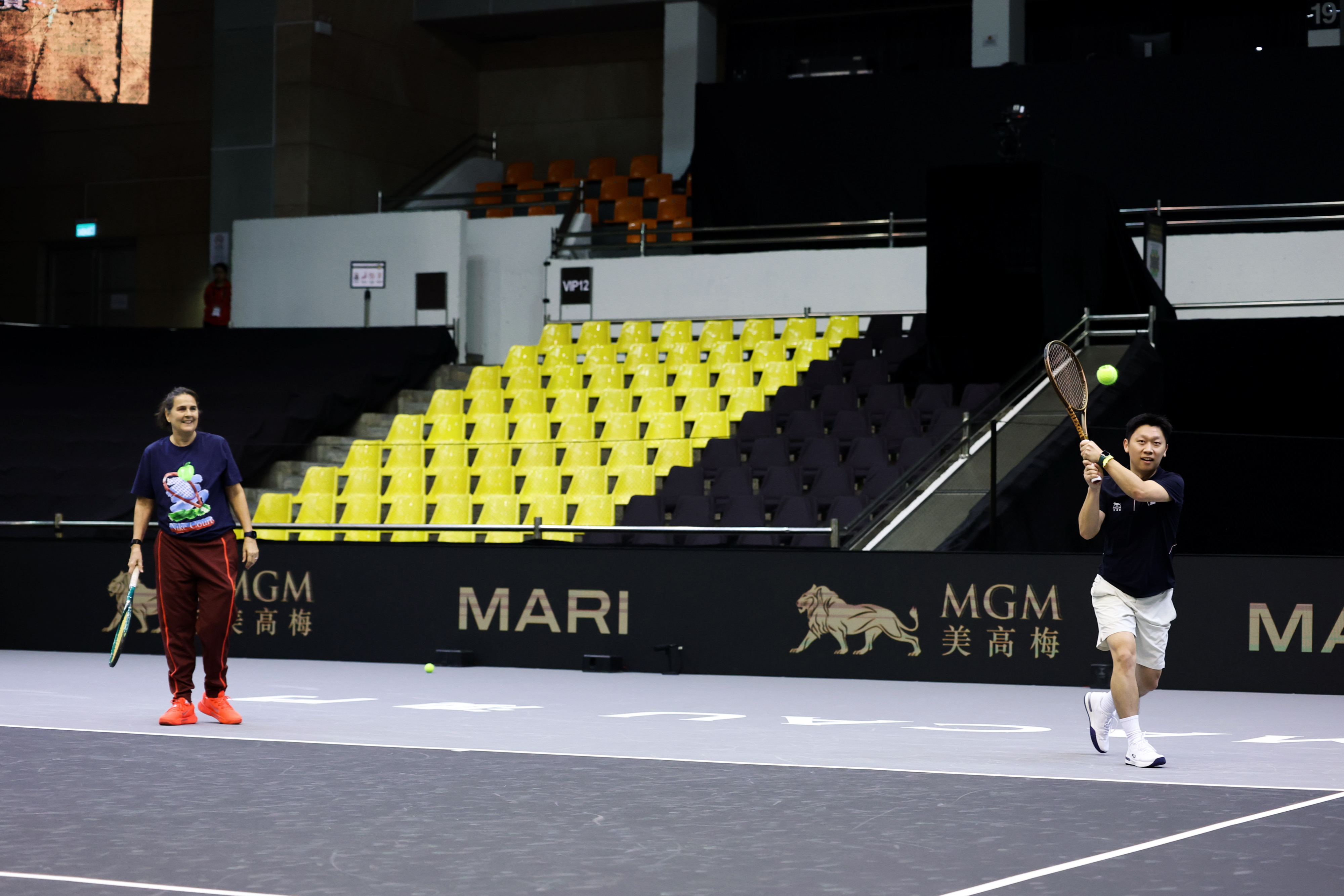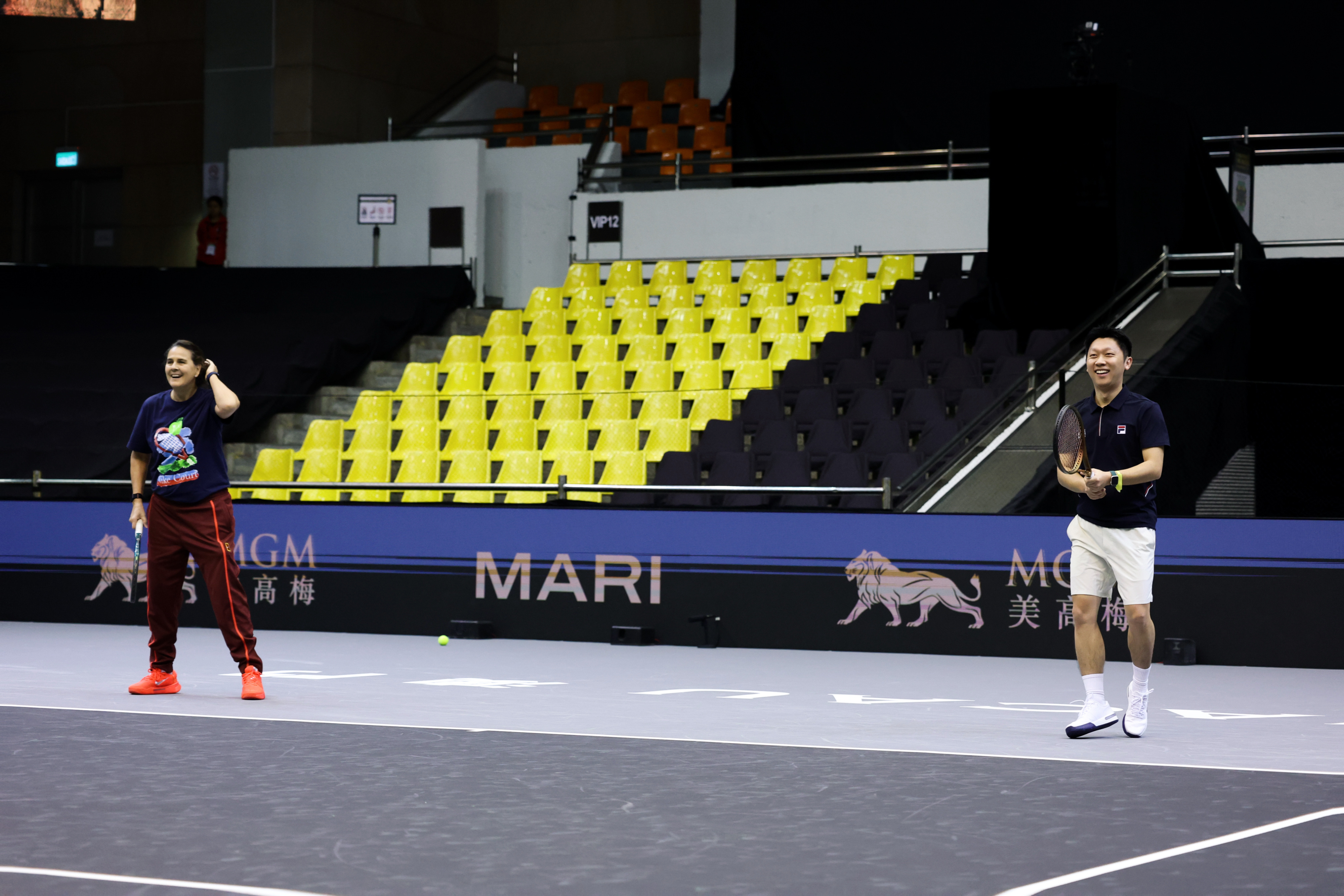 也是打上美高梅澳门网球名人赛了,感谢FILA邀请,跟西班牙名宿、大满贯冠军马丁内斯搭档,与菲律宾新星伊埃拉切磋底线,今天打得很过瘾!(有两张表情管理不到位) 澳门·澳门艺术综艺馆