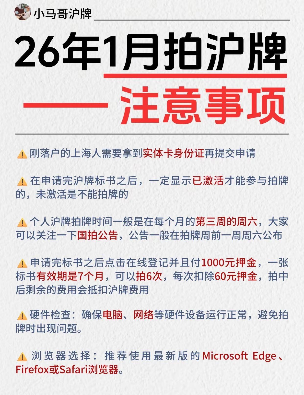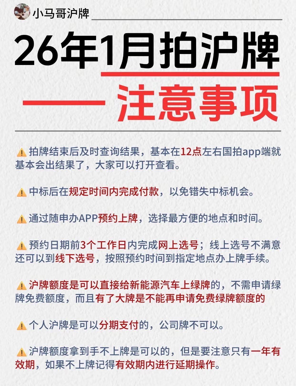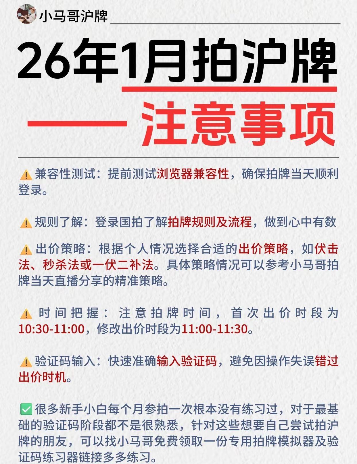 26年1月拍沪牌——时间安排及注意事项。沪牌 拍沪牌 上海沪牌 上海拍牌