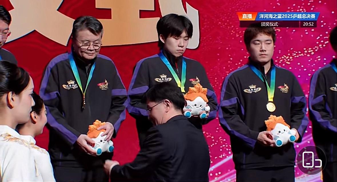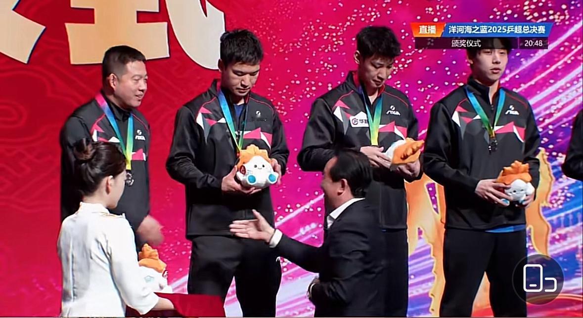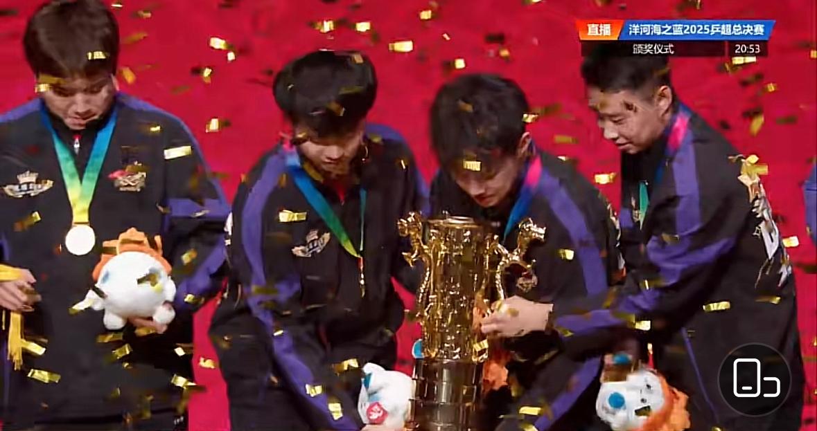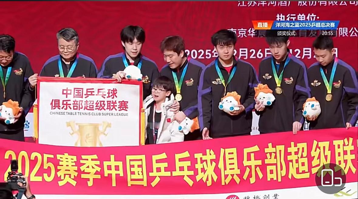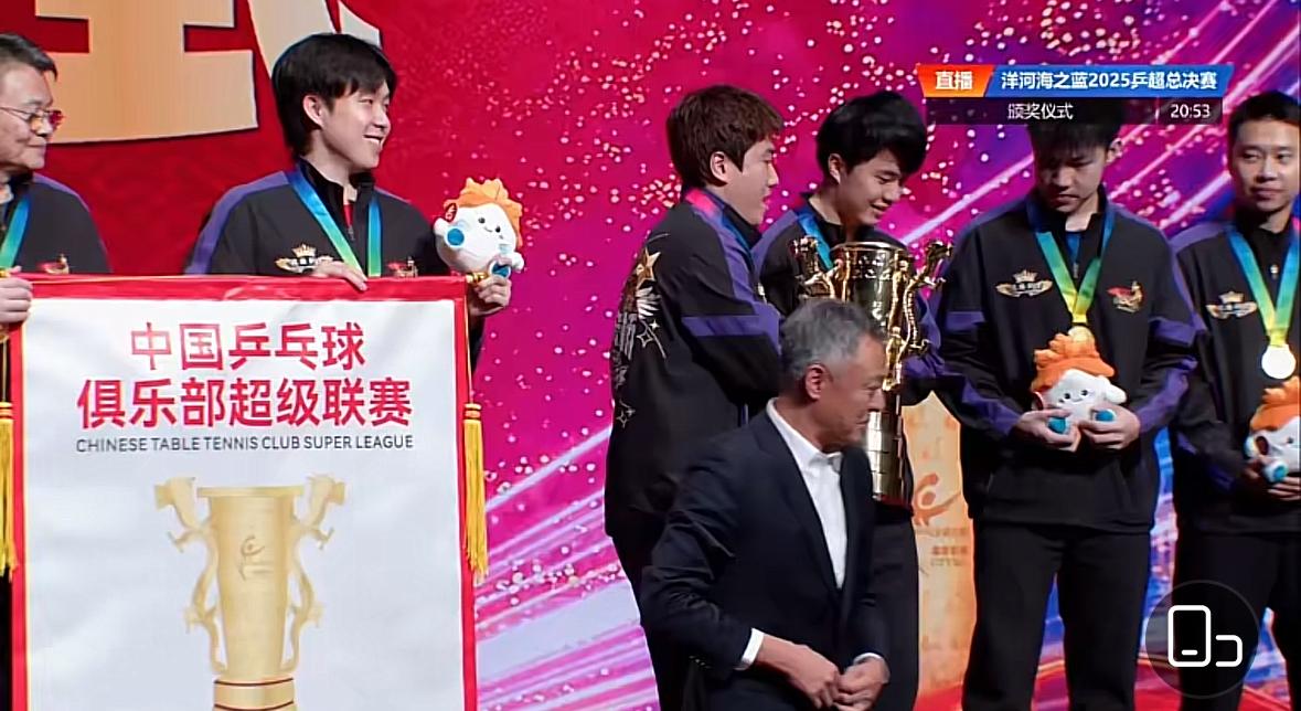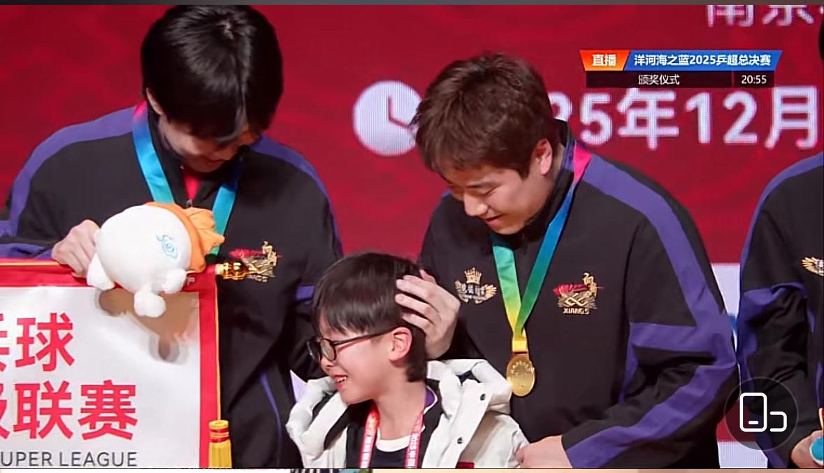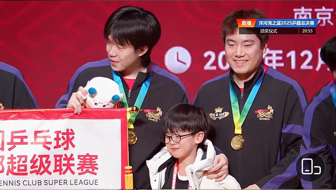 王楚钦带领山东魏桥卫冕冠军 颁奖时刻梁靖崑把儿子叫上台太幸福 乒超联赛总决赛, 山东魏桥3:0横扫黄石基地夺冠, 颁奖时刻太开心, 太幸福, 首先王楚钦太聪明啦, 王楚钦主动拿旗子, 让梁靖崑和林昀儒举奖杯🏆, 笑的开心😃, 梁靖崑在颁奖结束, 把自己儿子凉皮叫上台, 这一刻真的好感动, 好温馨, 凉皮也在打乒乓球🏓, 就是国乒的梯队建设, 这么早就感受到夺冠的喜悦, 以后一定会传承梁靖崑的拼搏精神, 加油魏桥, 加油梁靖崑, 加油王楚钦!