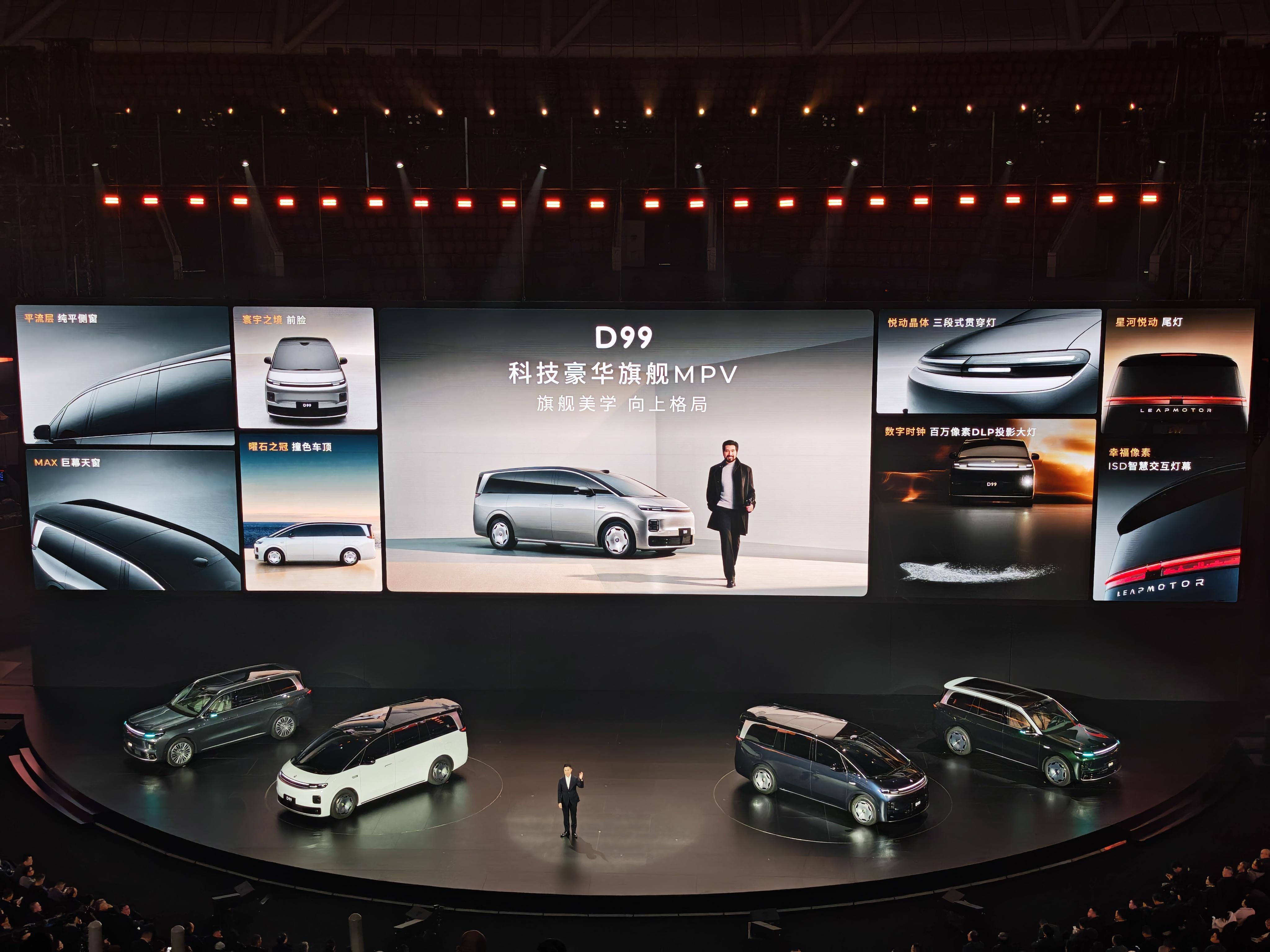 零跑10周年发布会零跑的首款MPV车型零跑D99今天也正式亮相了,主打一个科技豪华,明年的MPV市场又是一场厮杀啊。零跑9系豪华双旗舰同台首秀