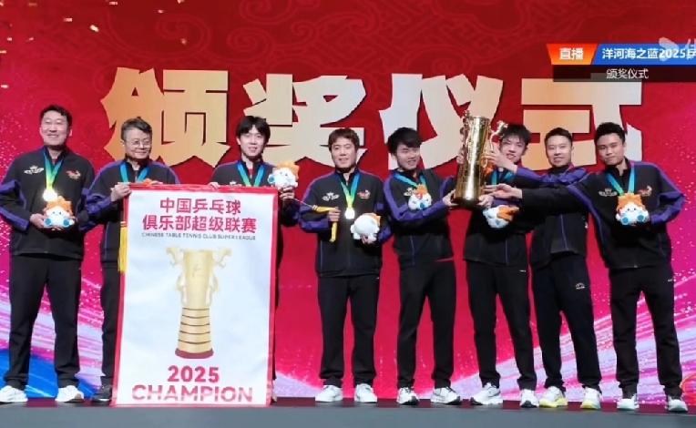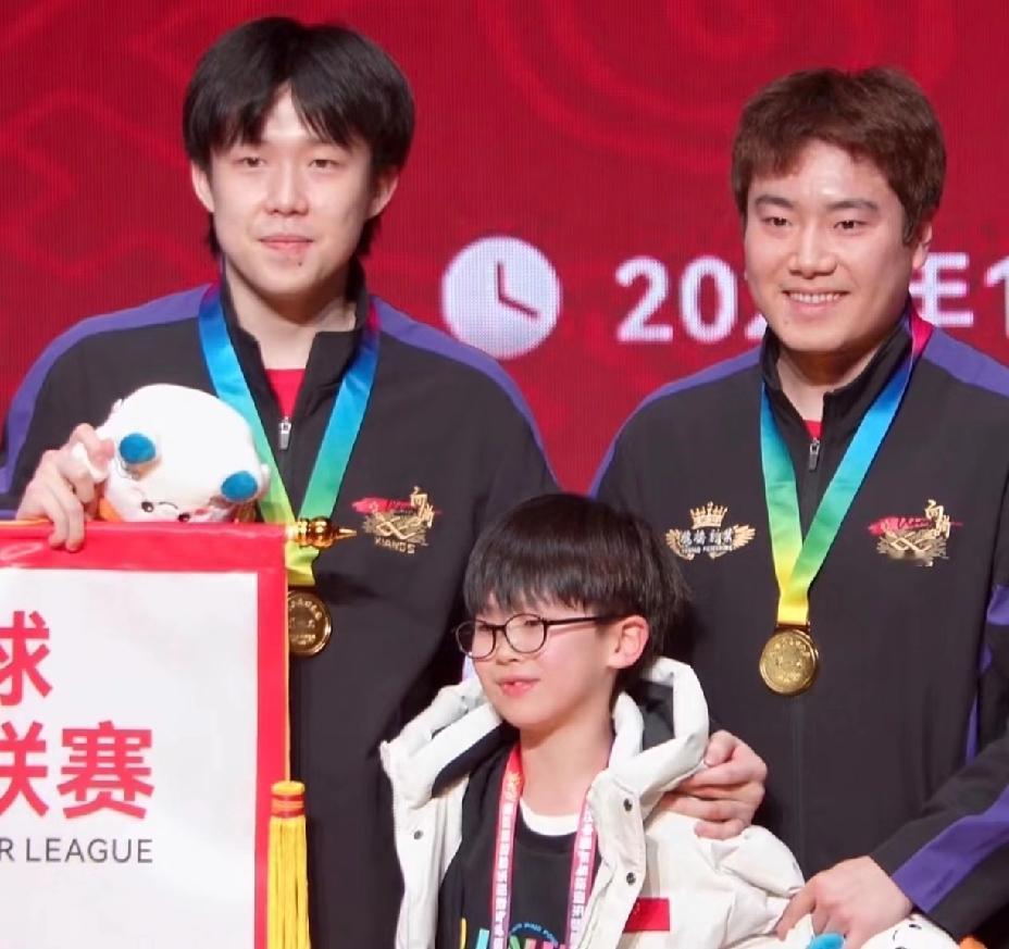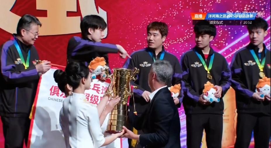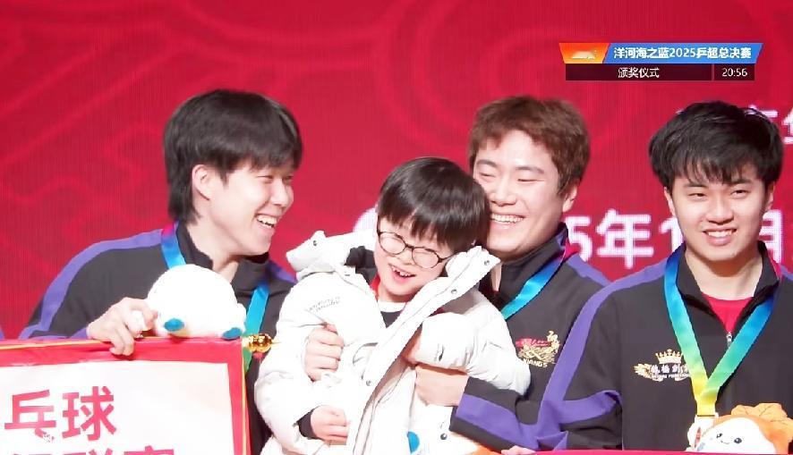 恭喜山东魏桥, 获得2025年乒超联赛男团冠军。 王楚钦和梁靖崑这“小聪明”耍的, 明眼人都看出来了。[捂脸][捂脸] 聪明的大头, 一把夺过旗子, 指挥着其他人拿奖杯。 他肯定暗喜, 这么沉的奖杯赶紧去别人那。 不善言谈的梁甜甜, 看到大事不妙, 赶紧让林昀儒和黄友政拿奖杯。 自己则抓起旗子的一个吊穗, 不管怎么样我反正是拿东西了, 不要蛐蛐甜甜啥也没拿。 冠军时刻, 有人把甜甜的儿子抱上颁奖台, 小凉皮一直不好意思地喊着, “不要,不要。” 旁边的王楚钦赶紧摸摸他的头, 梁甜甜也是赶紧哄哄, 这画面真好。 看来那个头大的是真喜欢凉皮, 这甜甜的儿子也是真帅。 2025乒超联赛总算圆满了, 女团冠军深圳大学, 男团冠军山东魏桥。 (图片源自于网络)