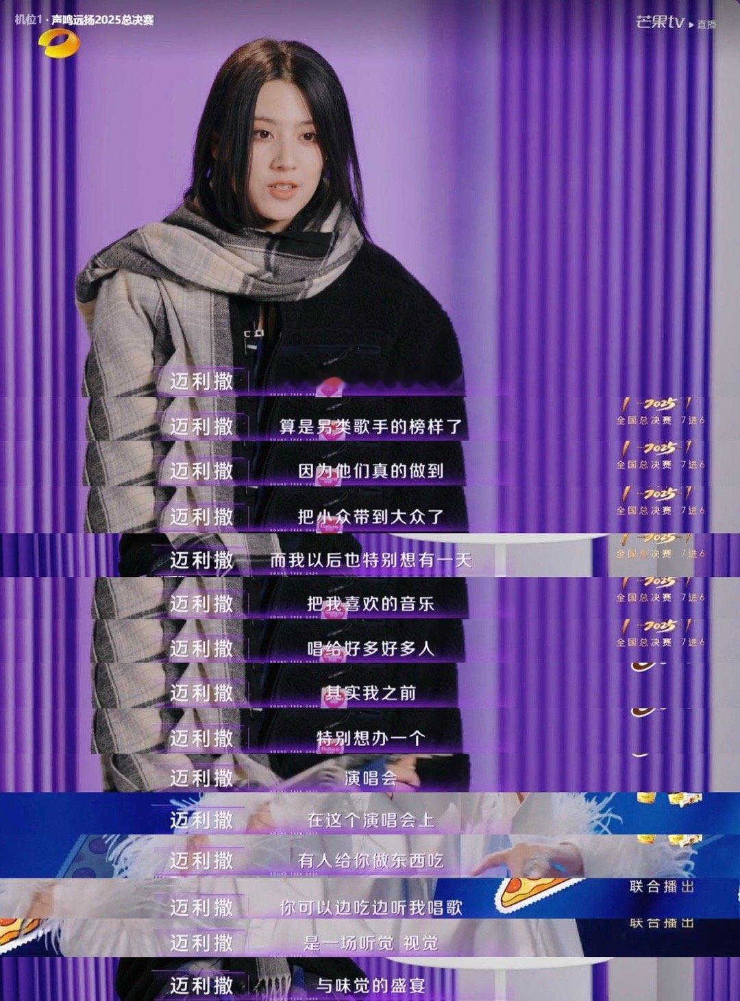 居然在音综看到张子枫同款眼神 当迈利撒在舞台上投出那个“张子枫同款眼神”时,《象人》这首歌便有了画面。她在《声鸣远扬》的这次表演,是演唱、表演与舞台美学的成功融合,刷新了观众对她的认知。