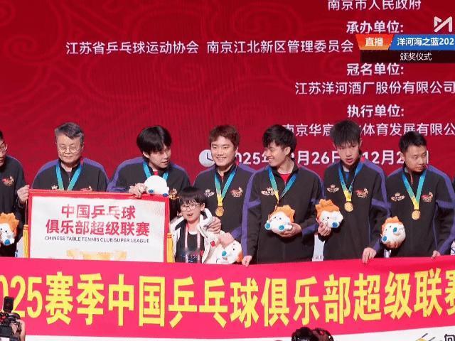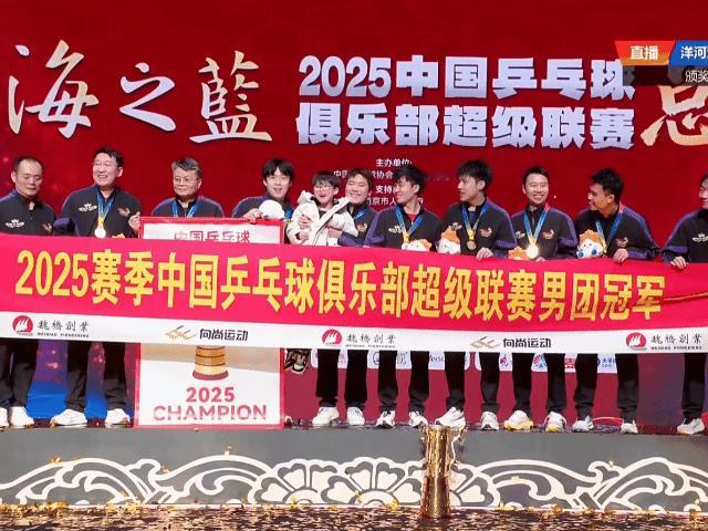 2025年乒超联赛魏桥拍冠军大合影把凉皮也抱来拍了😂