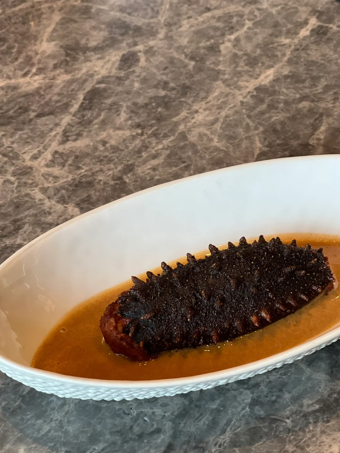 服务员会将绍兴酒放进香水瓶内喷到海参上