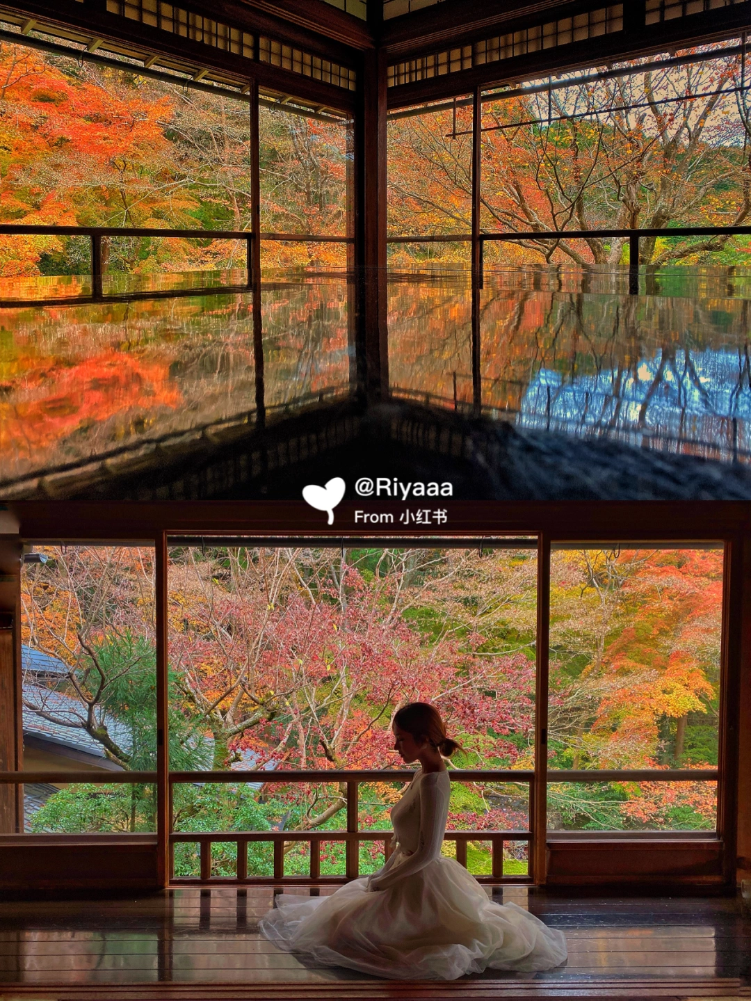 10:00琉璃光院:八濑比睿山口站下车,步行10分钟可以到。只有每年4~6月及10~12月的特别参观期间才能参观。借光滑干净的桌面反射的倒影,成为摄影爱好者必打卡点