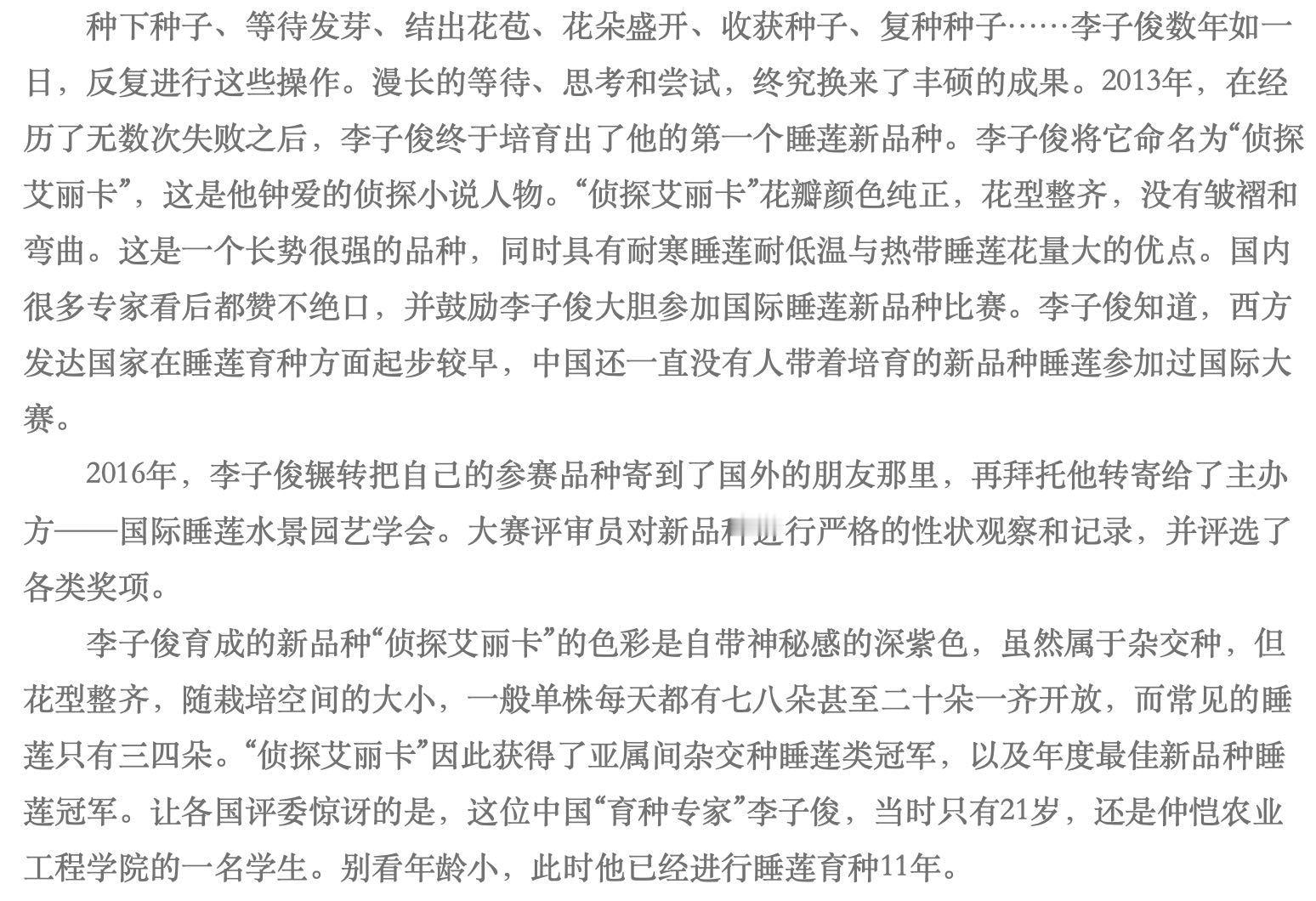 17岁少年在家种出冠军睡莲不怕冷也不怕热的花 科普一下!这款世界冠军睡莲叫“侦探艾丽卡”,由广州95后在17岁时培育。它可是热带与寒带睡莲的杂交后代,打破了环境限制,真的是植物界的“硬汉”!
