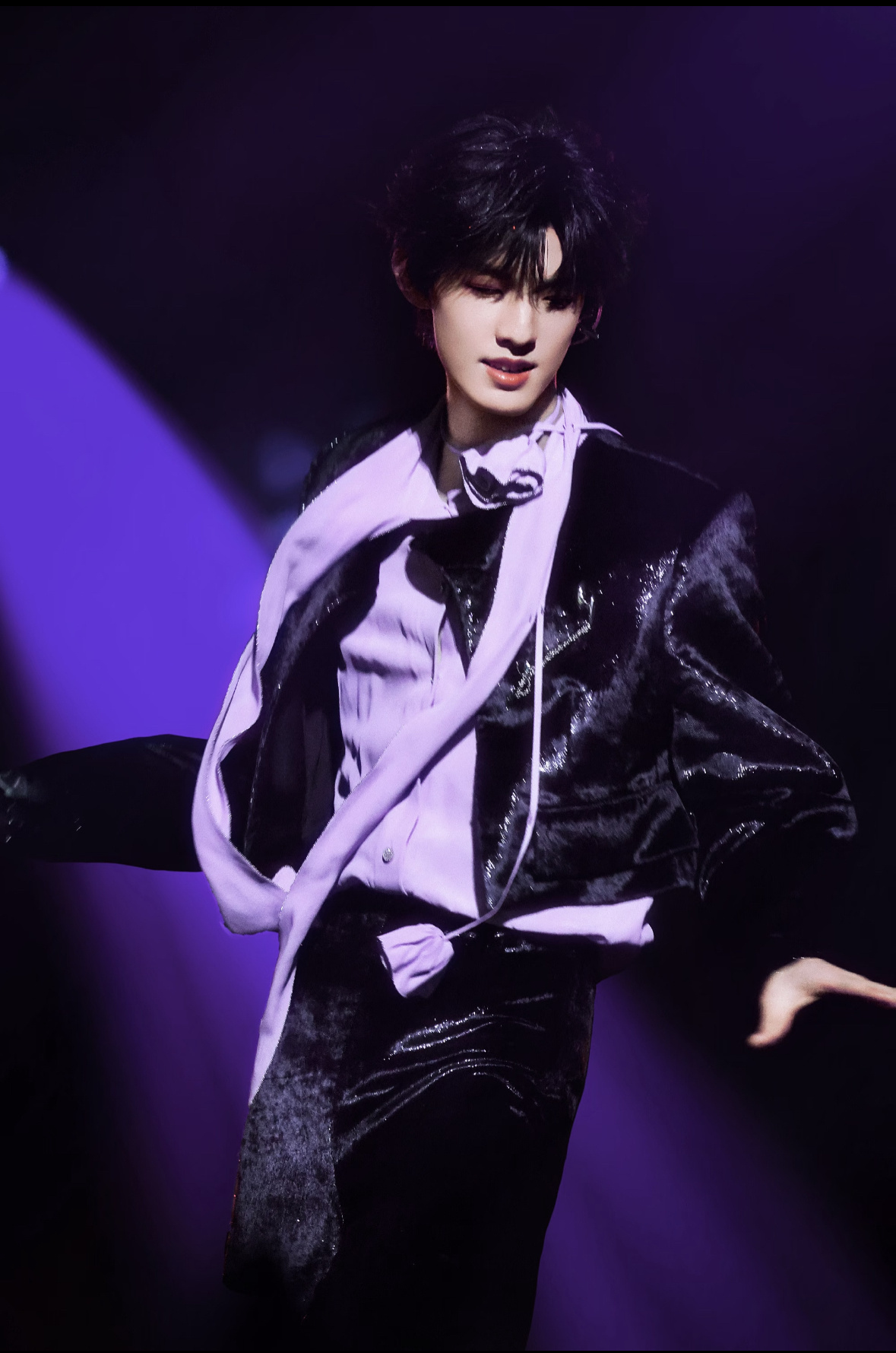 张泽禹紫色套装的确有韵味被张泽禹的紫色造型狠狠惊艳到了!紫色的魅惑与少年的纯粹在他身上奇妙融合,举手投足间都散发着迷人的荷尔蒙气息。这一套穿搭不仅衬得他皮肤白皙,更凸显了那份独属于他的高级感,真的很难不爱。