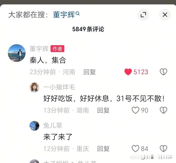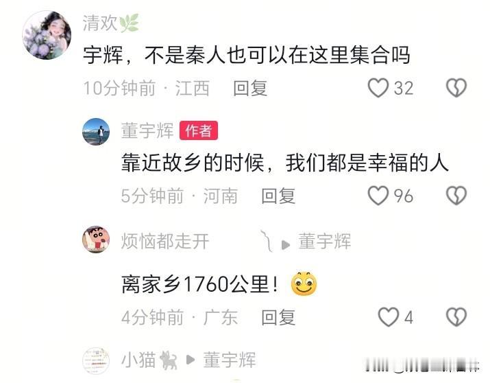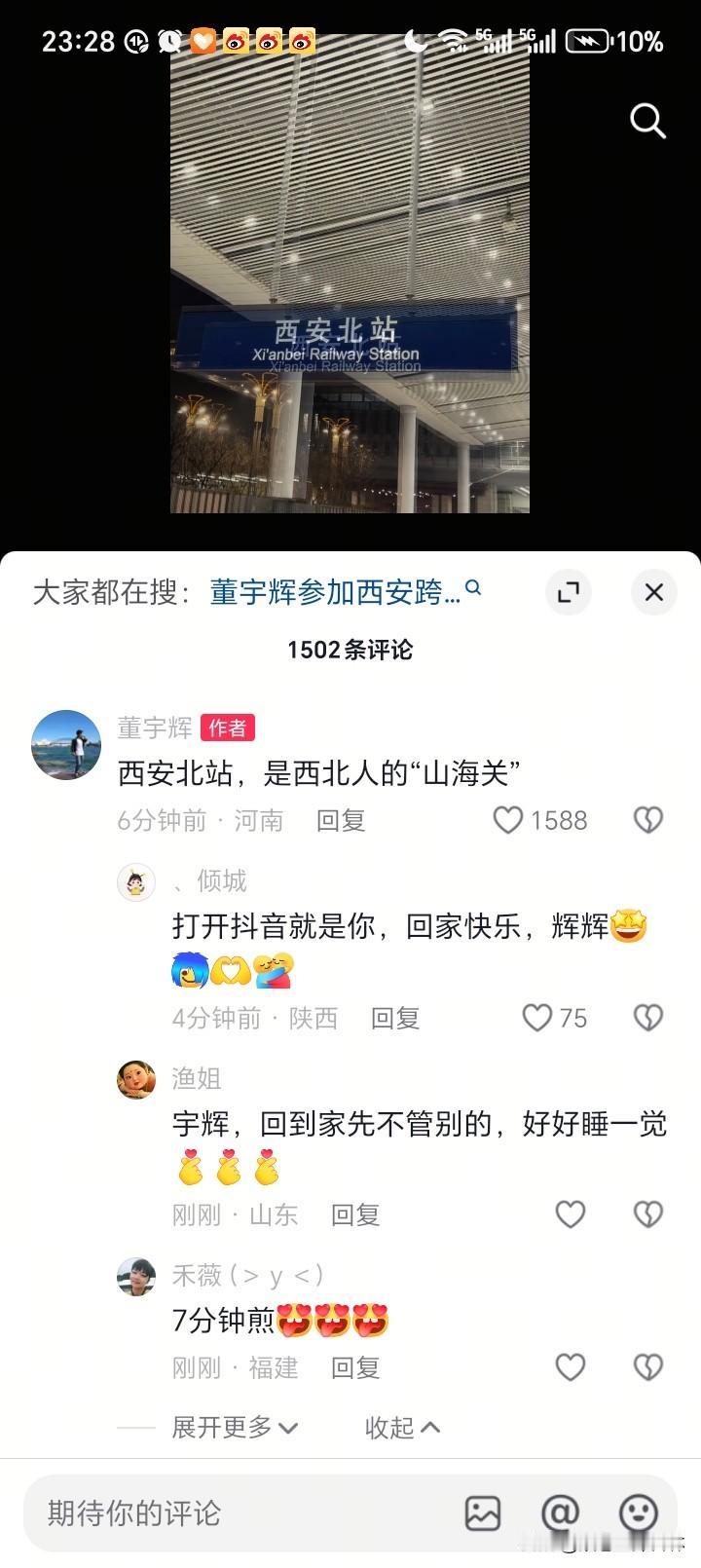 董宇辉深夜发文:西安北站是“西北人”的山海关。 一声“秦人集合”回应评论区已经超过5100条。 还有江西网友问:宇辉,不是秦人可以在这里集合吗? 董宇辉回答:靠近故乡的时候,我们都是幸福的人。 距离跨年音乐演出还有三天,回到家乡有董宇辉忙的。不过,董宇辉走到哪里,都会有流量跟随过去,相信他会开心、家乡会开心,211同学和网友们都开心。