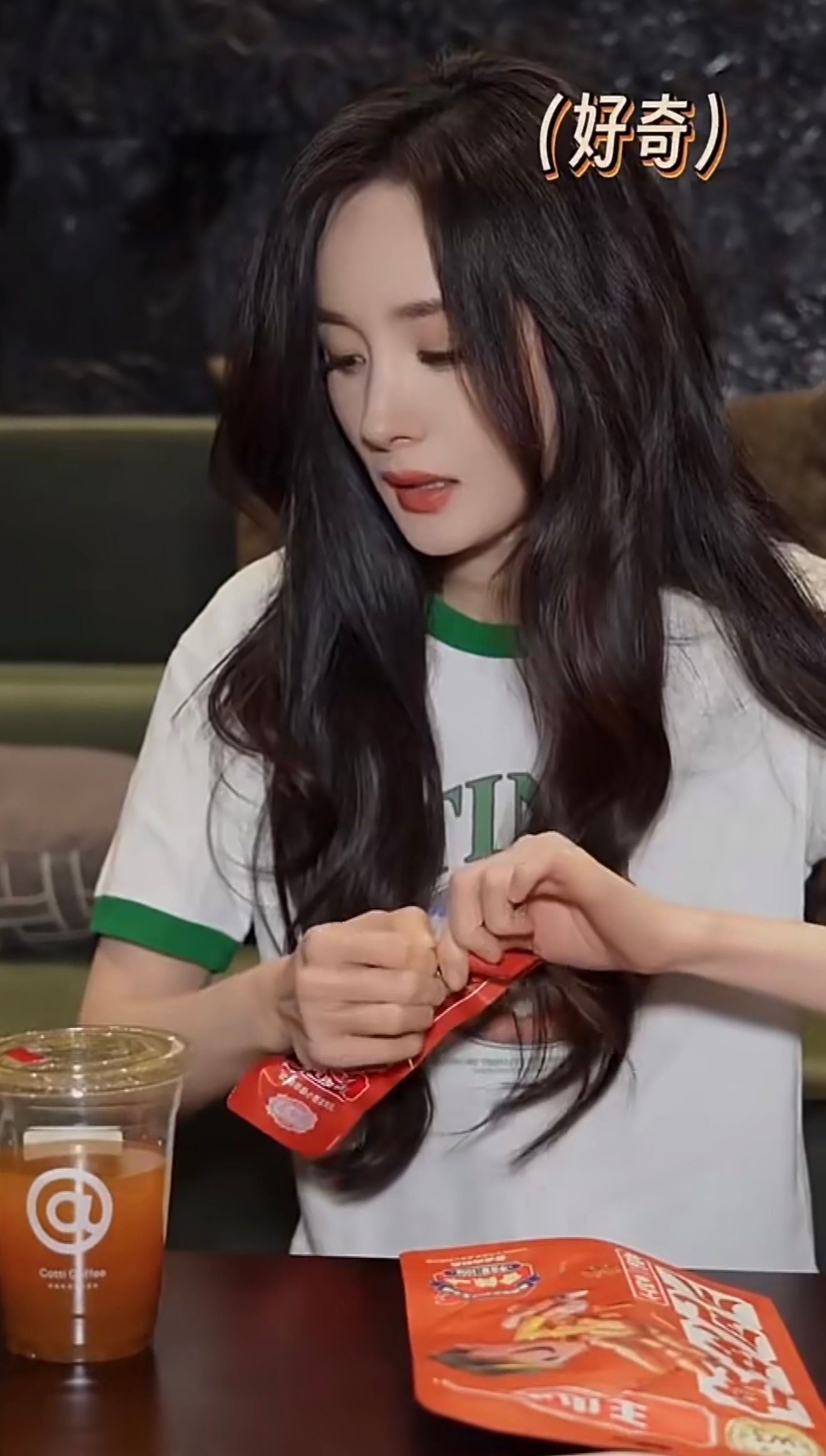 杨幂吃固体杨枝甘露沉默了杨幂太可爱了,没加入你们的时尚