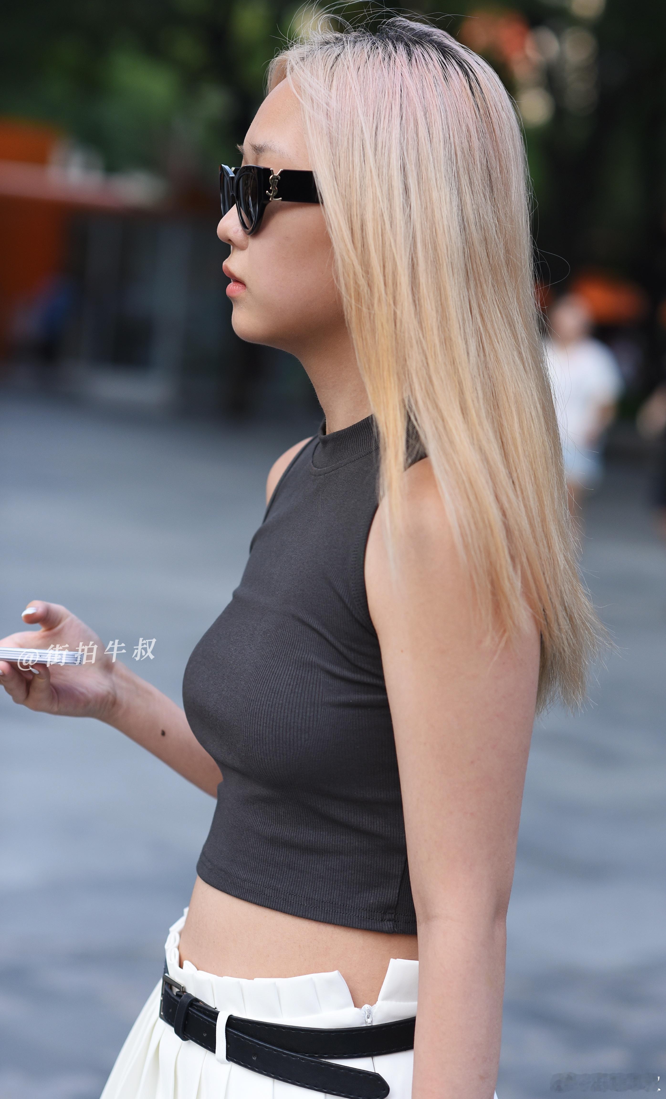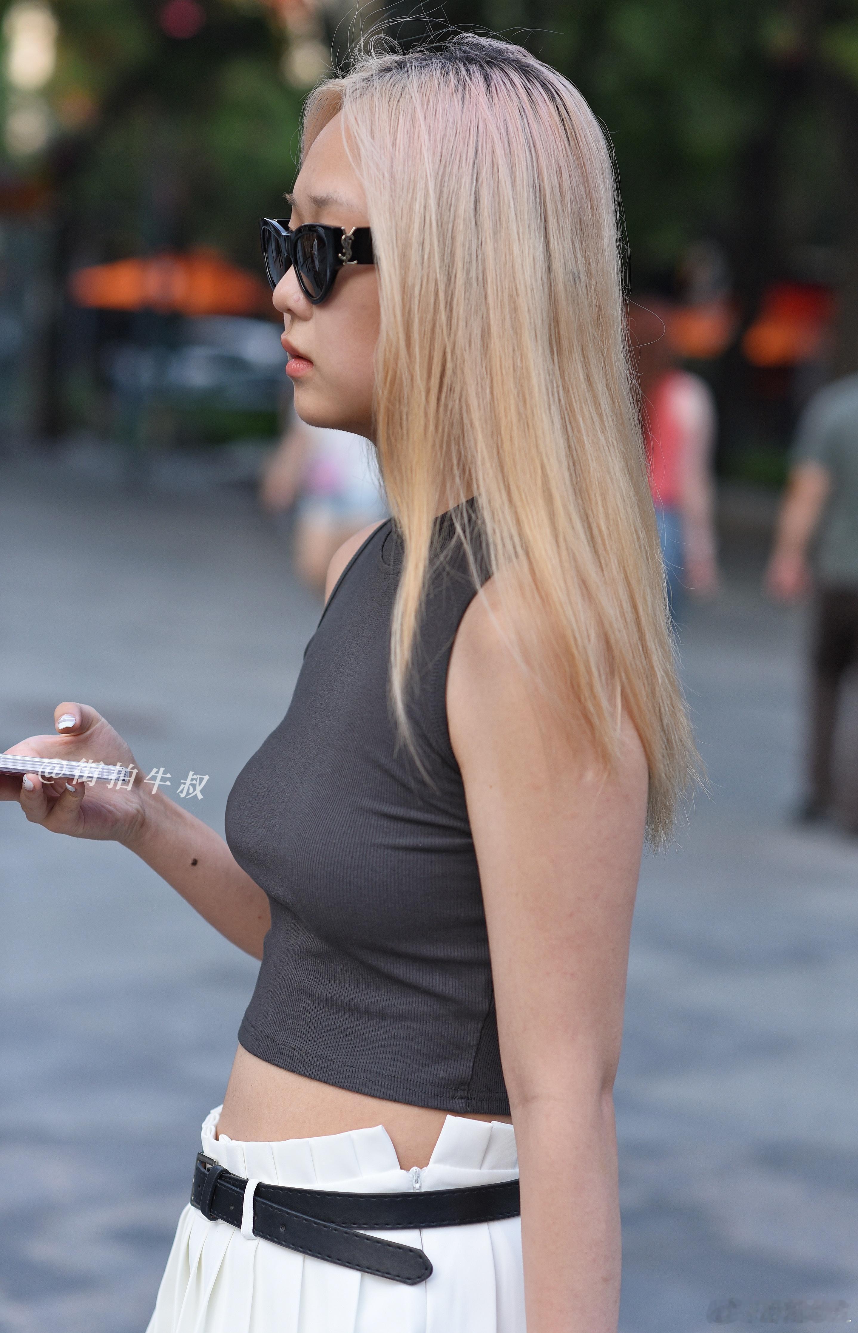 夏日清爽穿搭,白色T恤加牛仔裤简直是绝配,少女感直接拉满!就像白T搭绿色牛仔裤,