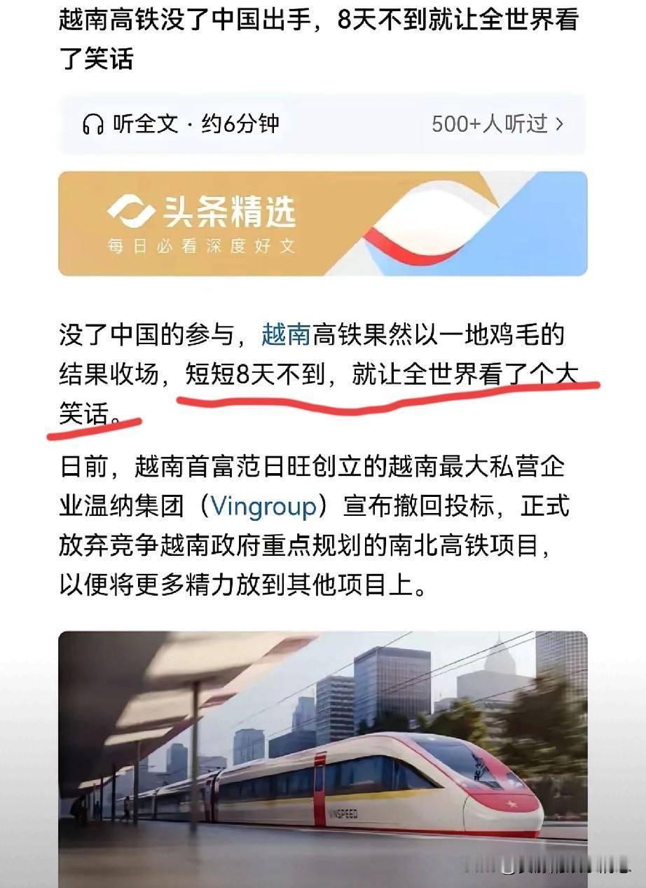 越南高铁项目招标了,越南想通过西门子中标,再与中铁和中交联合获取技术和资金,结果被东大识破,不理会它的阴招。 最终西门子与Vingroup联合中标,越南高铁计划落空,8天后Vingroup试图弃标。东大保持清醒,不参与招标,免去后续麻烦。越南这做法像极了东施效颦,只能是徒劳无功。