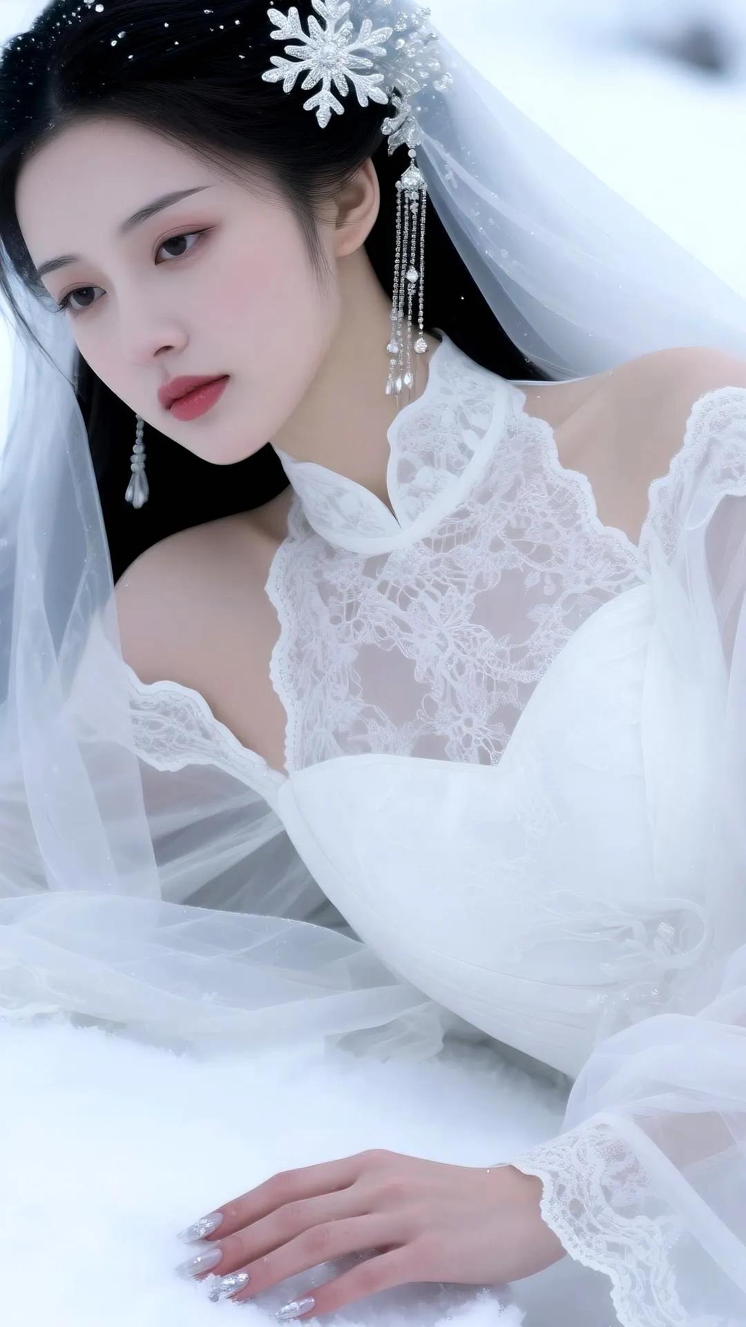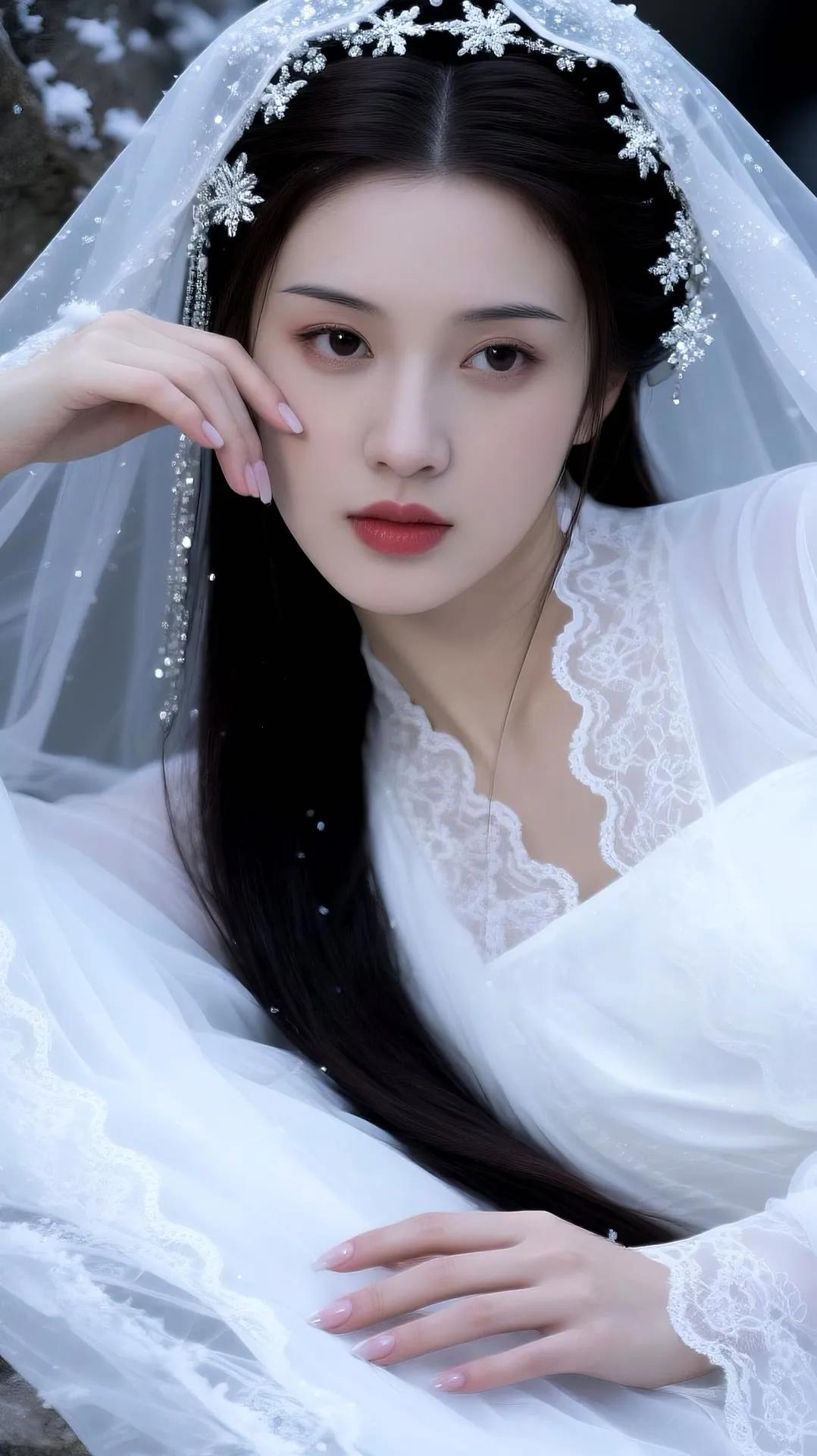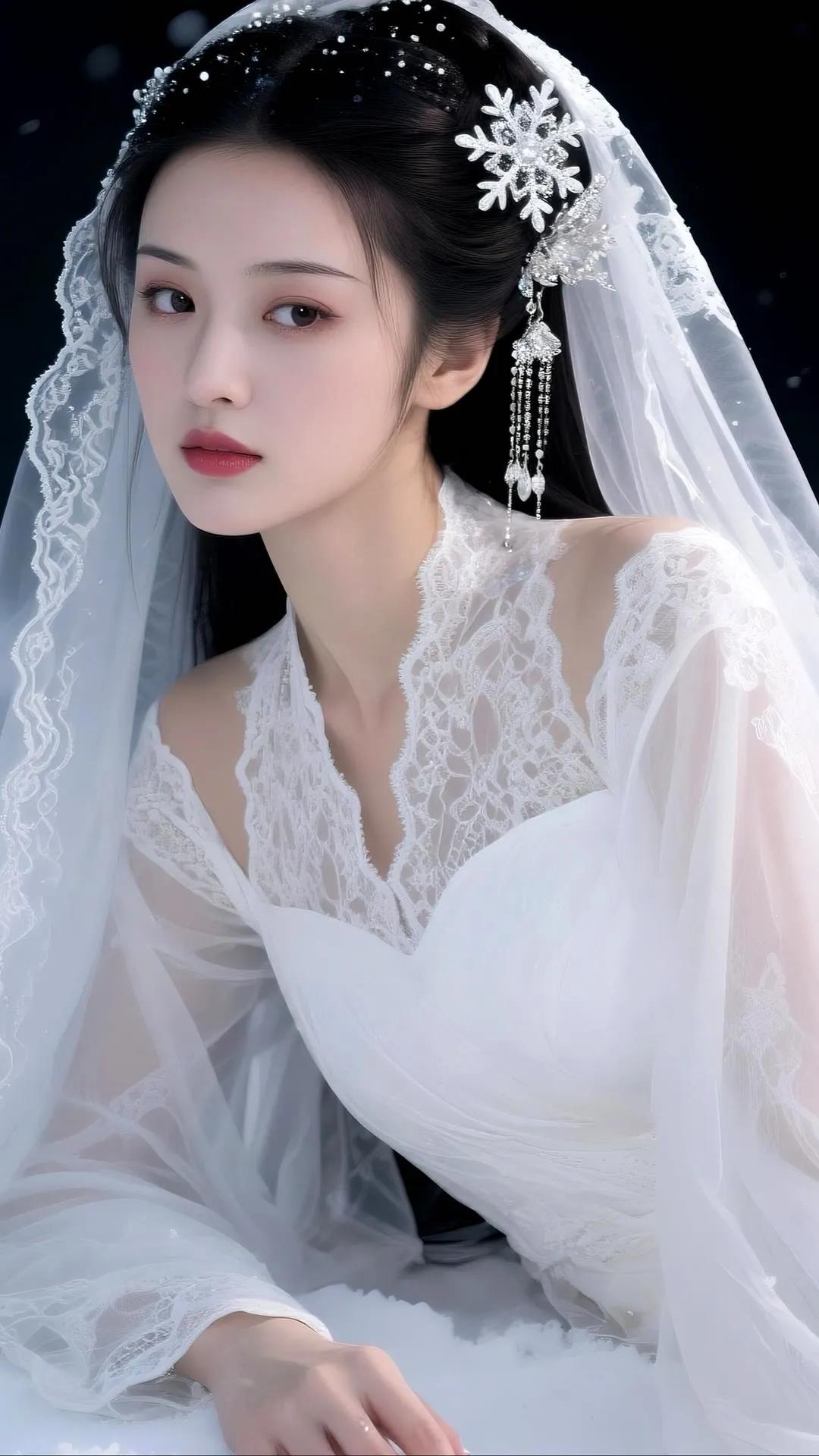 红衣佳人,花环点缀,笑靥如花,喜庆氛围