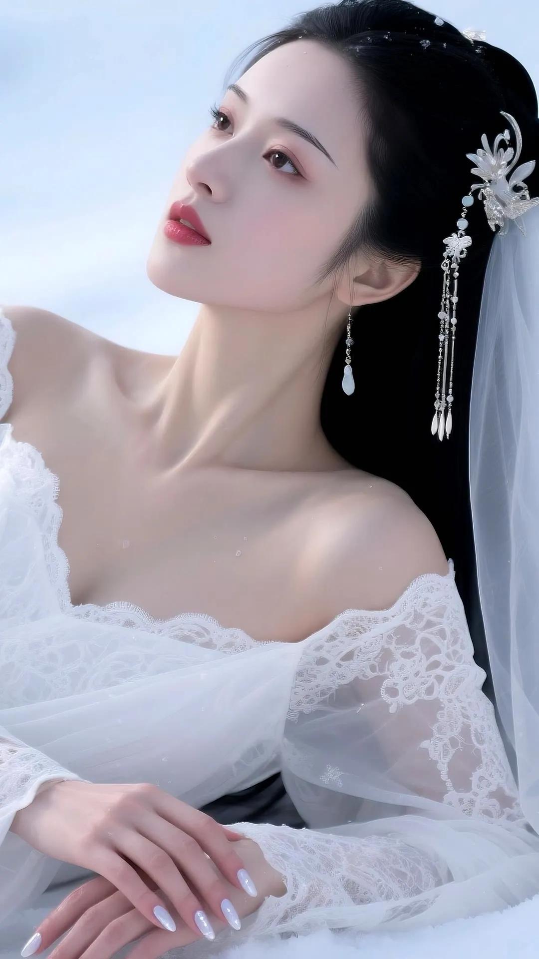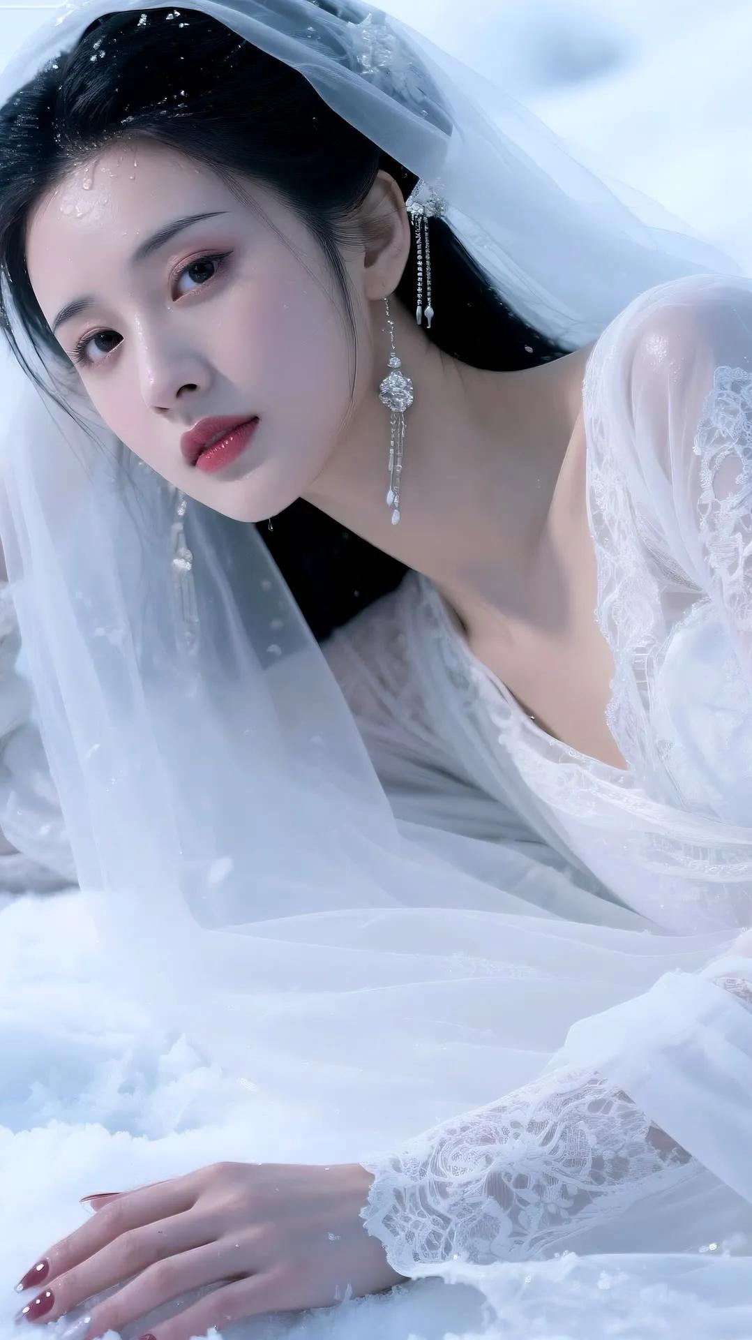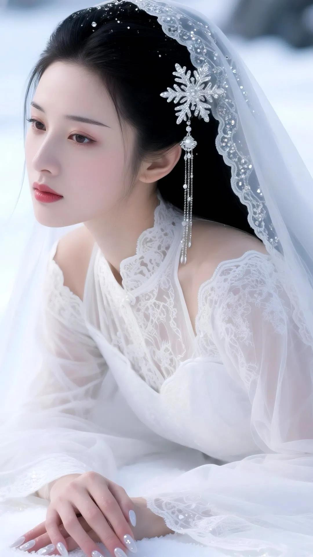 红衣佳人,花环点缀,笑靥如花,喜庆氛围