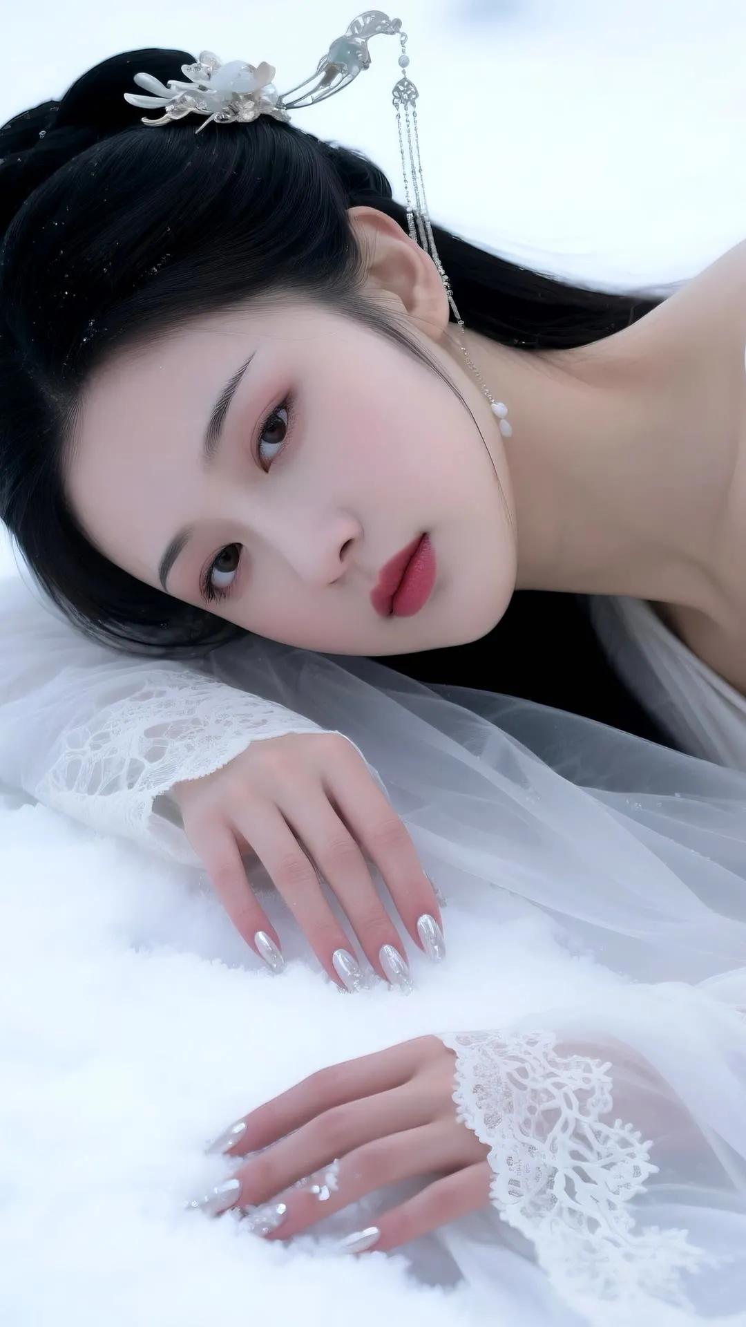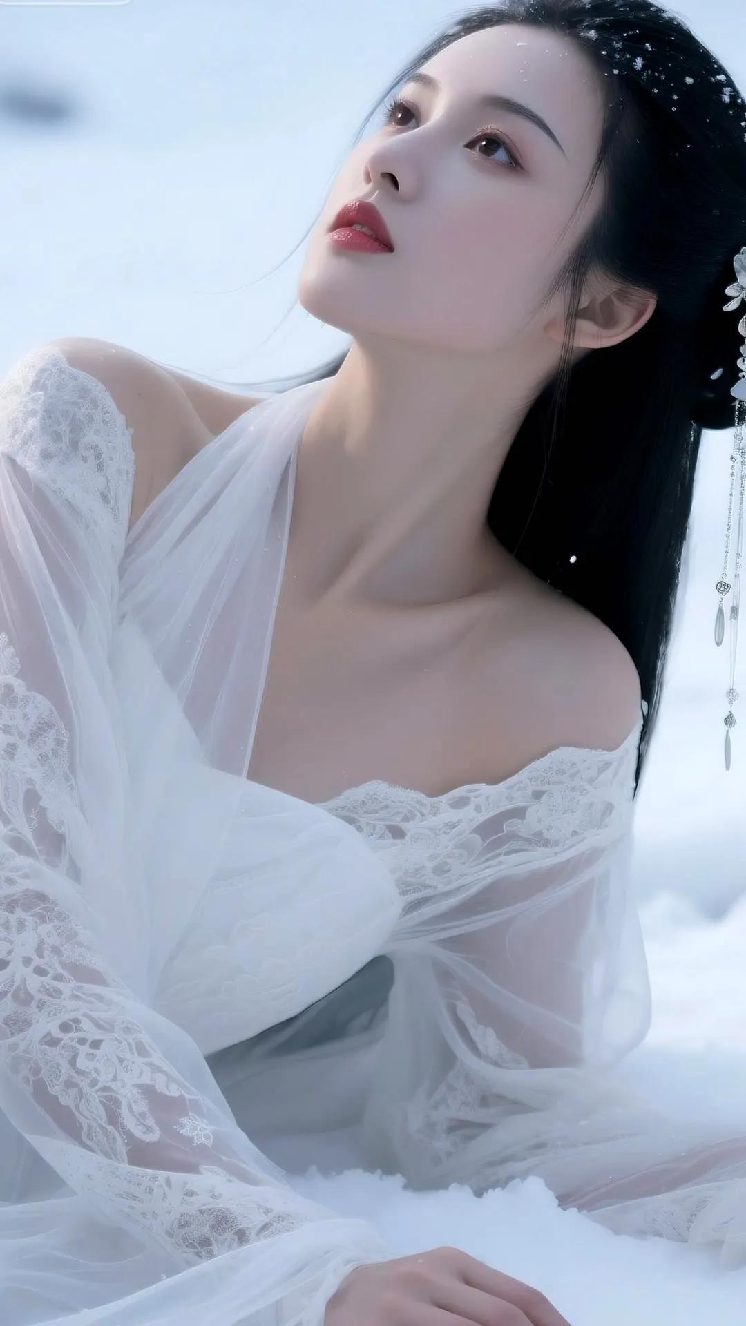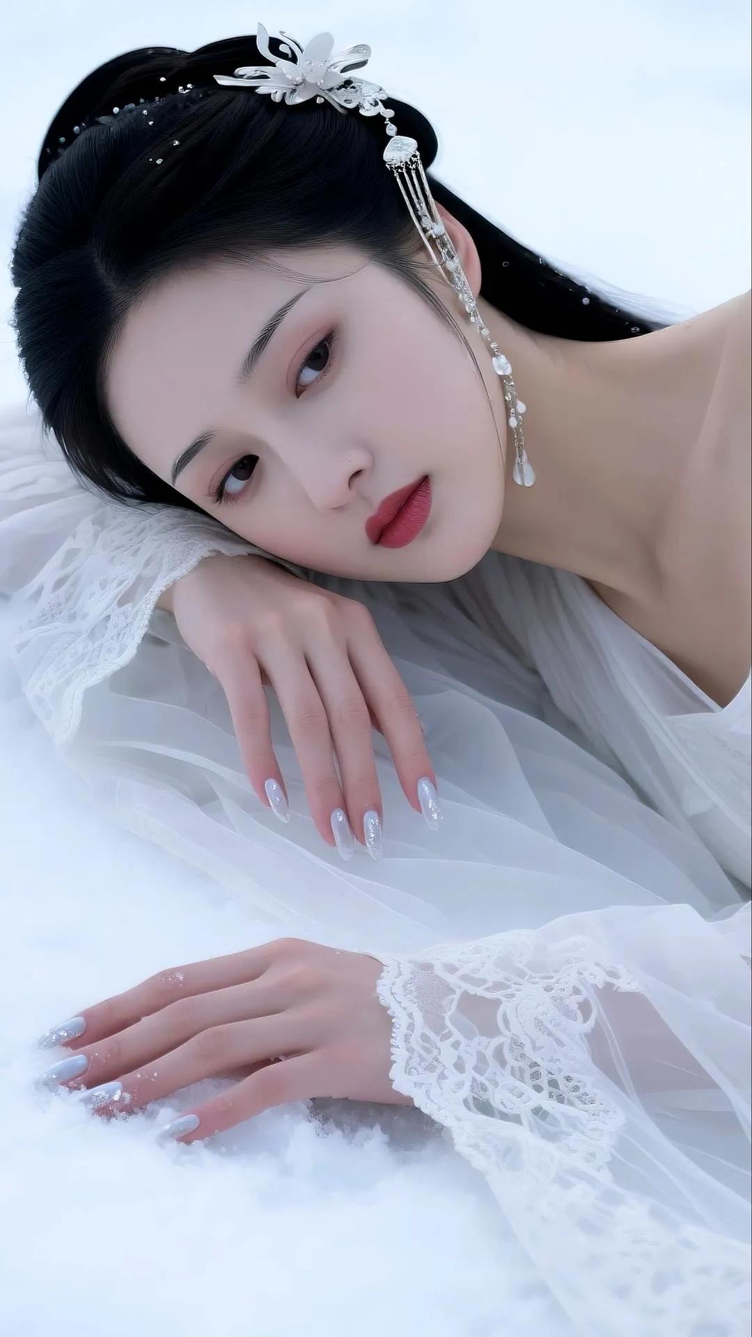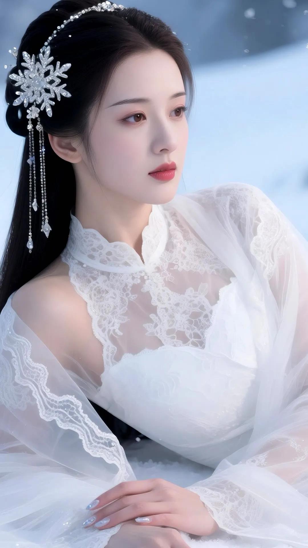 冷艳的蓝调背景,温柔的红唇,优雅的东方美人