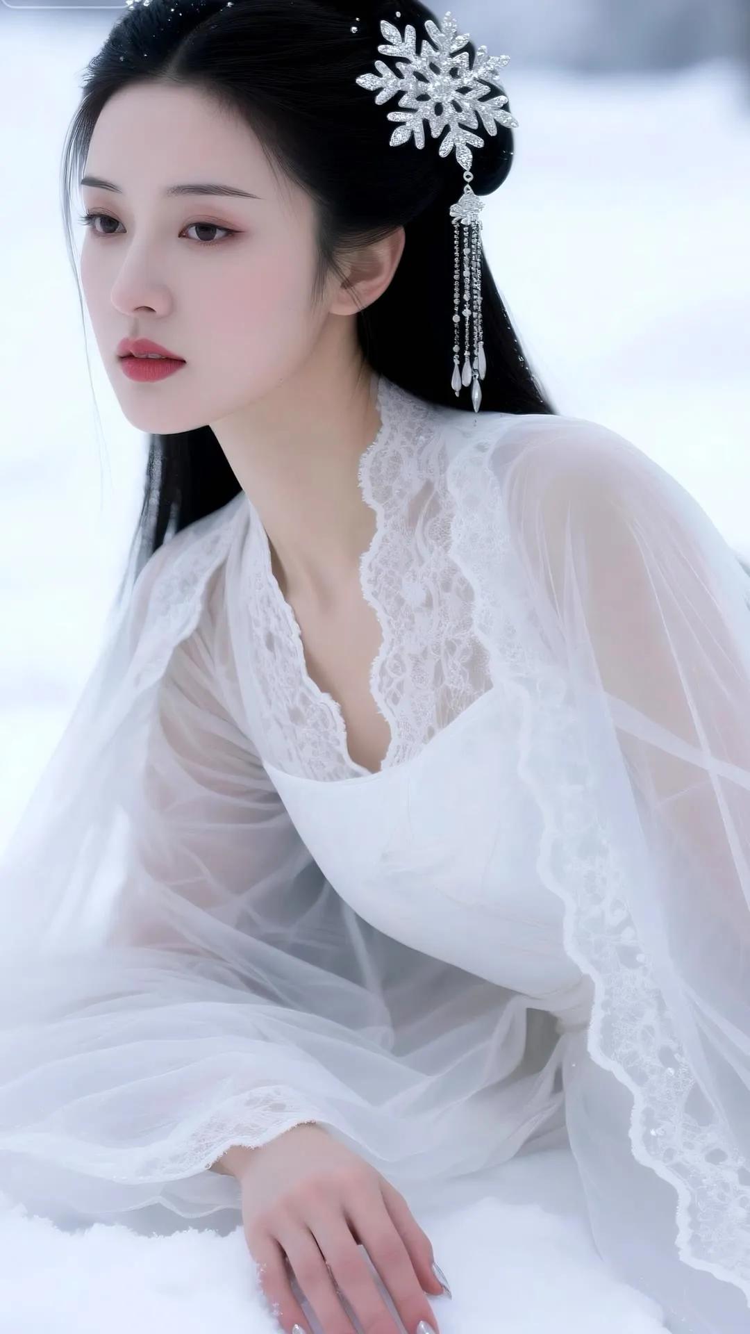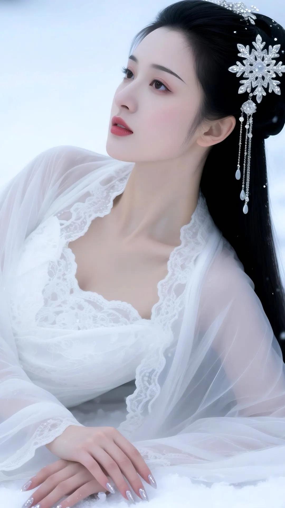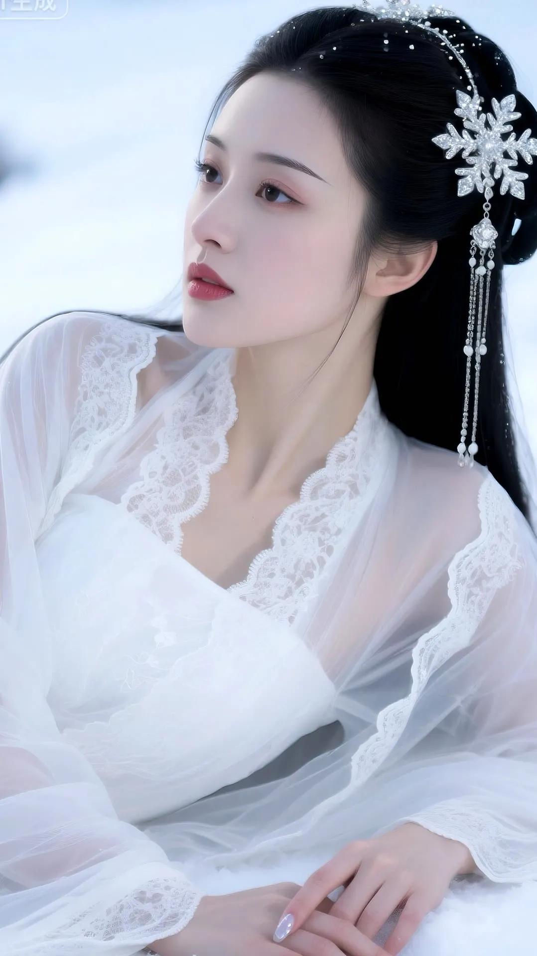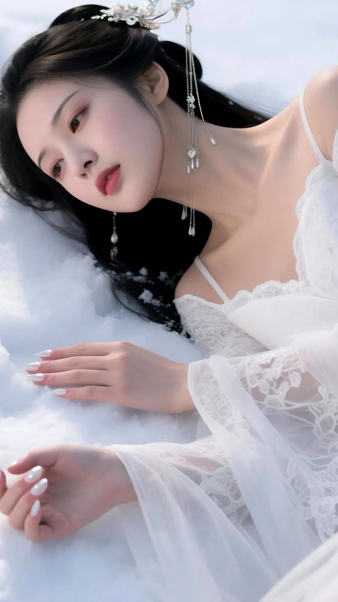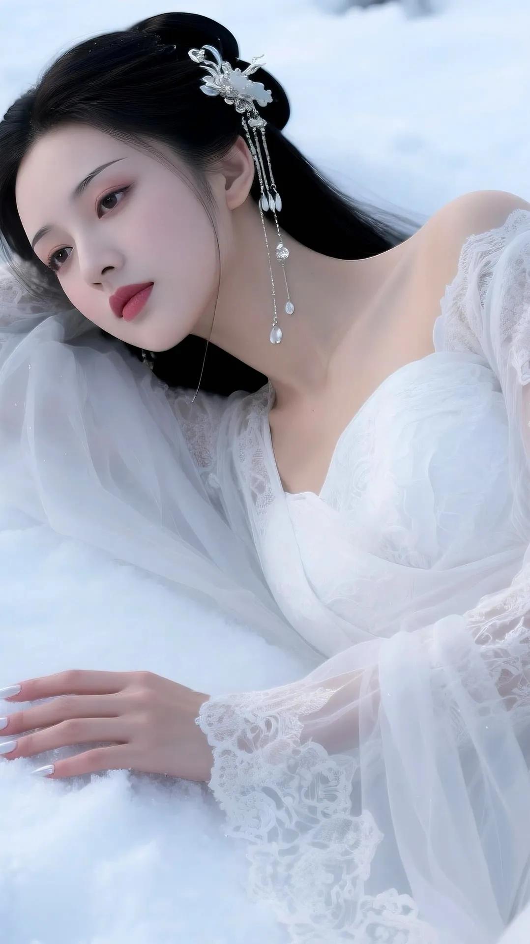 冷艳的蓝调背景,温柔的红唇,优雅的东方美人