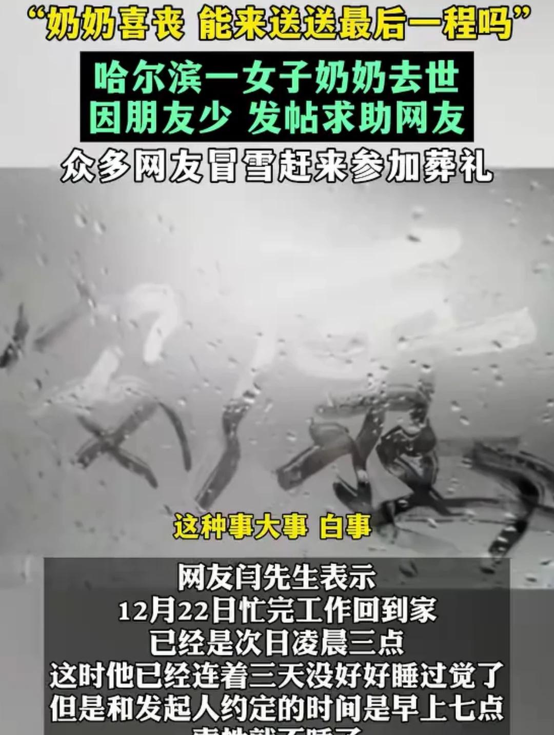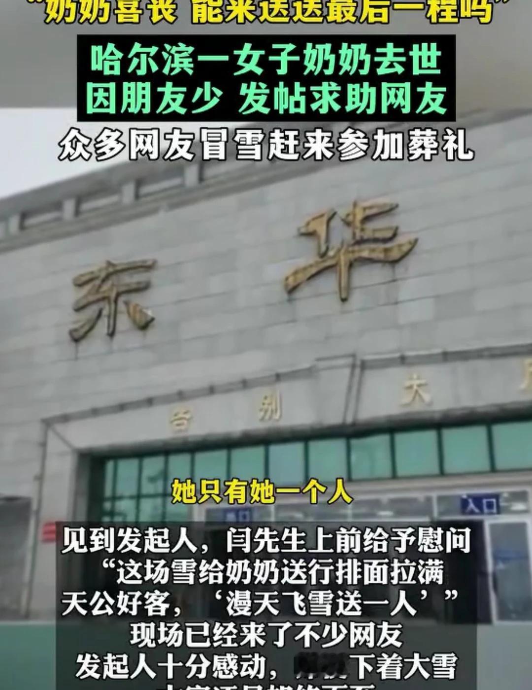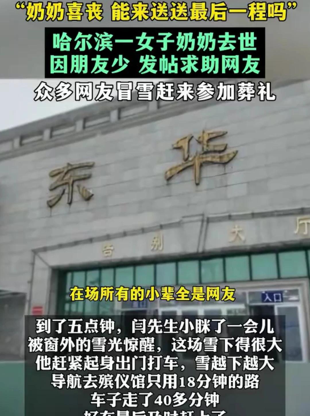 奶奶喜丧,女子因朋友少求助网友! 近日,黑龙江哈尔滨,一场特别的葬礼满是温情。小
