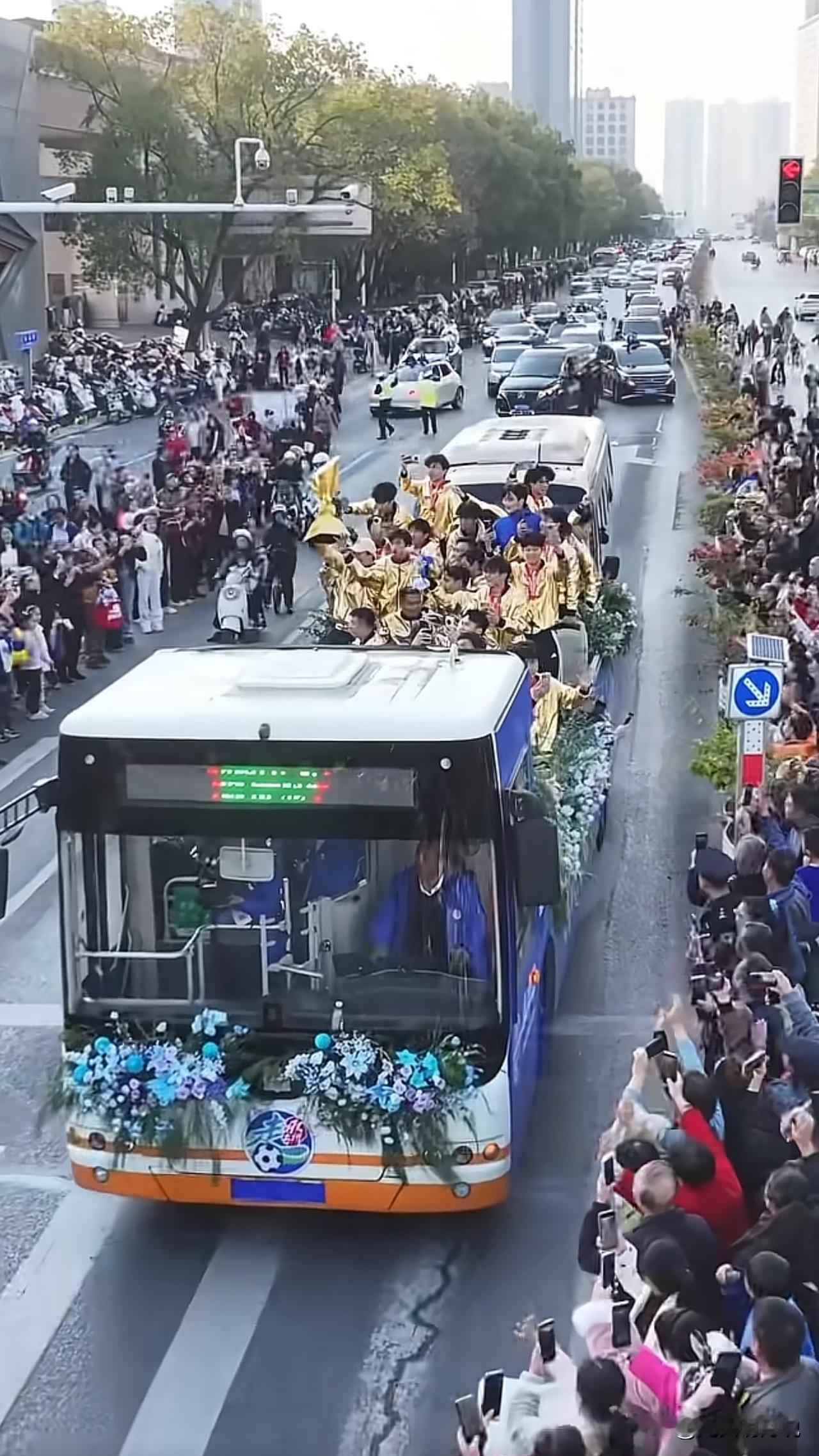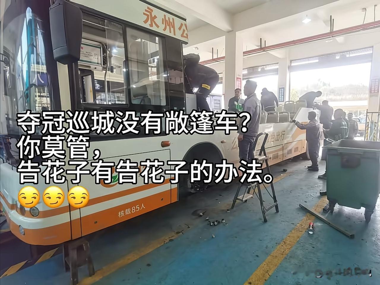 这次湖南足球超级联赛,永州队得到冠军,作为湘南千年古城零陵郡,欢迎冠军回到家乡,仪式感满满。就像古时候的状元都要骑马游街一样。现在这支球队回来与家乡的民众一起分享荣誉。 最让人惊奇的是,他们这次坐的那个敞篷车,竟然是公交车改装的。