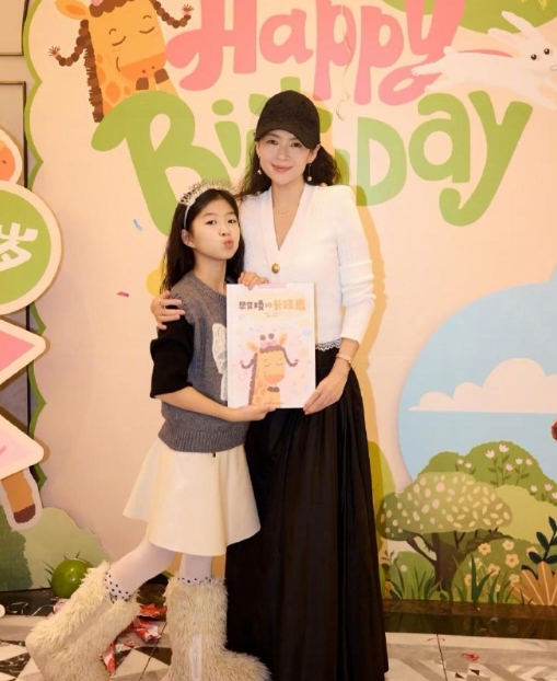 章子怡为10岁女儿庆祝生日,现场宣布女儿即将出版漫画书。女儿长得挺漂亮的,身材高挑,很有当演员的潜质。