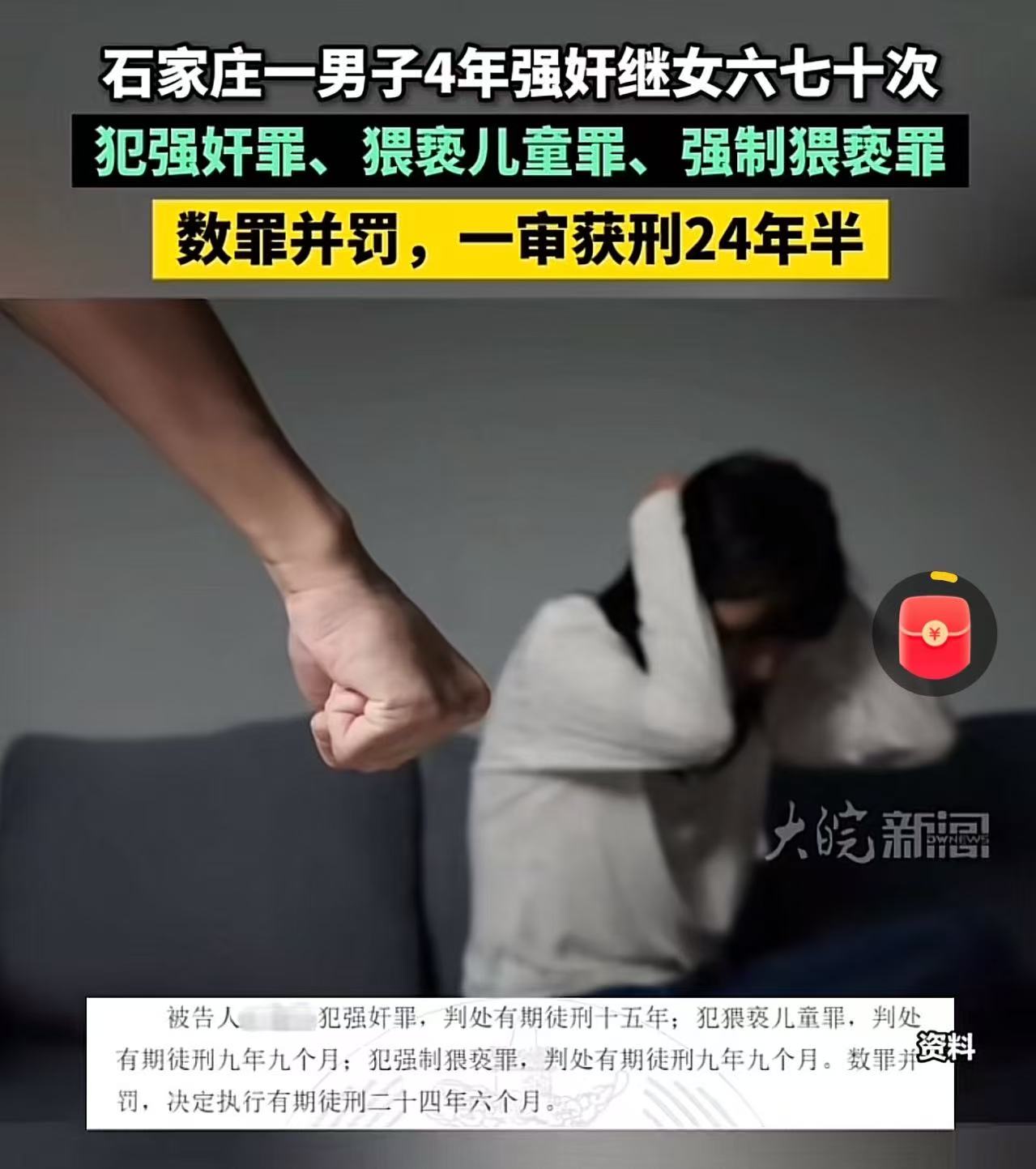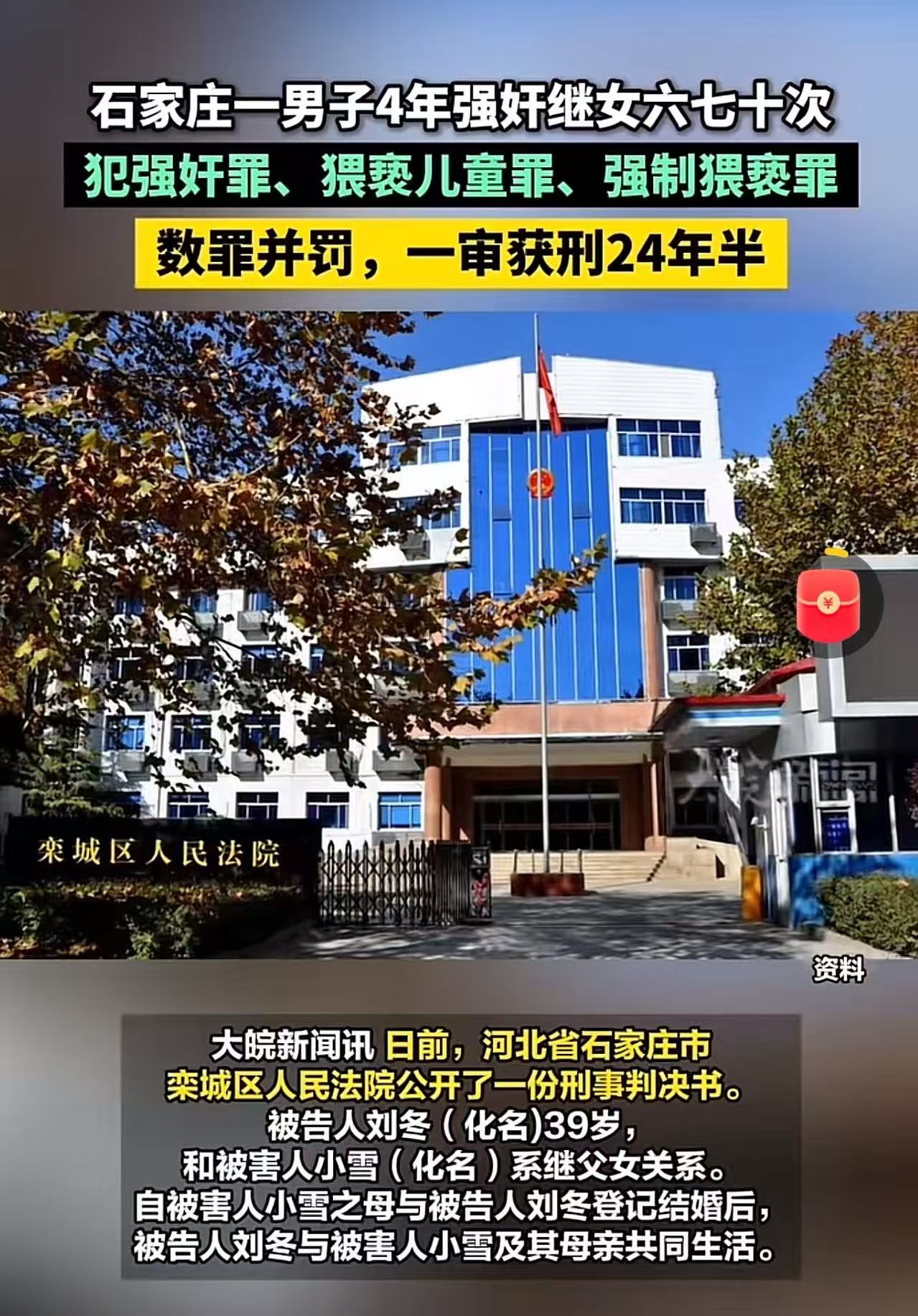“这简直是泯灭人性!”石家庄,一名男子竟然在长达4年的时间里,对年幼的继女实施了六七十次强奸,一审被判刑24年半,可网友们却纷纷怒吼:这种继父直接判死刑都不为过,简直连畜牲都不如,连自己的继女都下得去手!