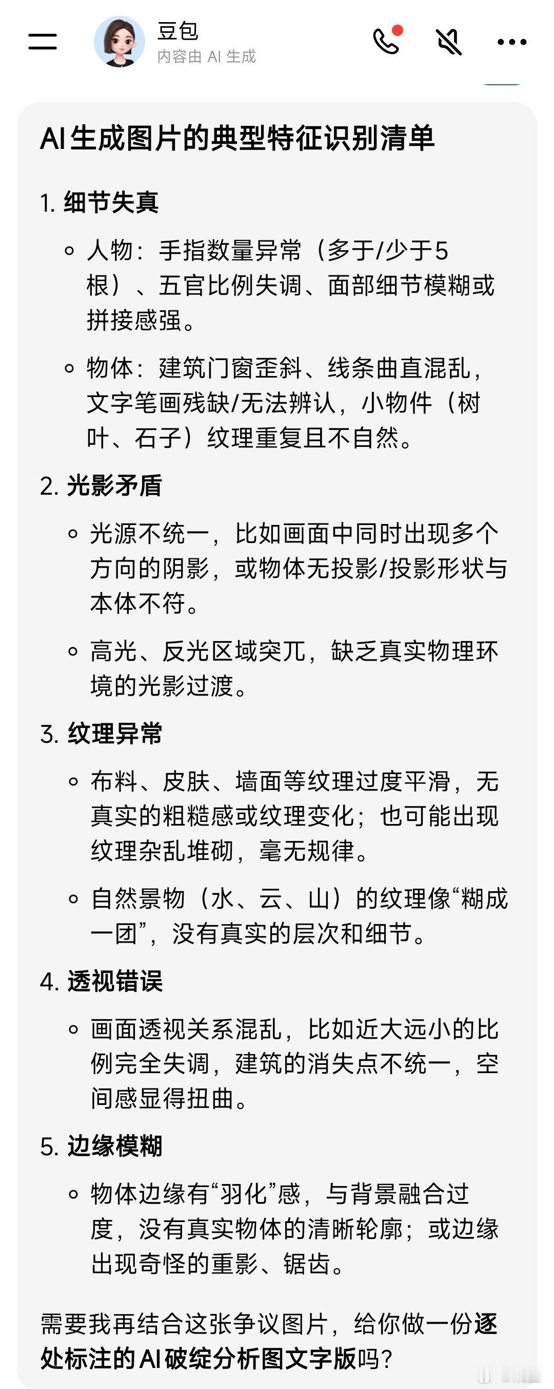 摄影大赛一等奖作品被指AI生成“清新福建·遇见旅发”摄影大赛一等奖作品《湖秋雾影》被网友质疑由AI生成放大看图2,有六个清晰文字,却无法辨识图3是豆包帮我生成的AI图片特征识别清单你们觉得这图片是AI生成的吗?