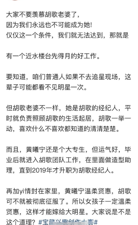 大家不要羡慕胡歌老婆了, 因为我们永远也不可能成为她!