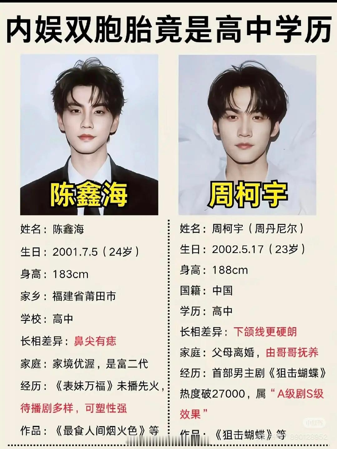 周柯宇和陈鑫海最近是不是得罪谁了?到处都是双胞胎贴,讲真我是容易眼盲的,也没搞混过他俩