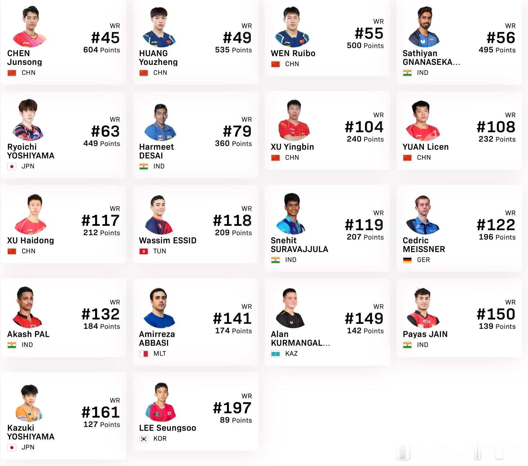 WTT支线赛多哈站20261.27-31单打参赛名单
