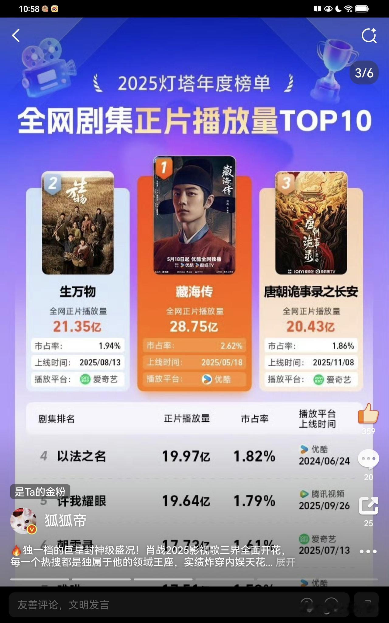 有肖战影视剧上映的档期,便是最热门的档期。春节档,肖战的《射雕英雄传侠之大者》话题热度居高不下;年中,《藏海传》海内外口碑与讨论度双双爆棚;年终,《得闲谨制》依旧在话题讨论、热度与口碑方面大获成功,为国产影视剧交上了一份极为亮眼的答卷,也带来了无与伦比的世界影响力。这便是实力巨星存在的意义,好的影视剧具备社会价值与文化价值,而巨星能够将这些价值传播至全世界,这才是有效的文化输出。 中国的硬科技与军事力量已然强大,软文化价值的输出在未来也至关重要。唯有影响力强大的巨星具备这样的能力。当初美日韩的文化入侵,不正是改变了一代又一代中国青少年吗?如今,哈韩、哈日、哈美的时代应当落幕了。中国有肖战这样在传统文化教育体系下成长起来的顶级优秀青年,喜爱肖战的海外影迷纷纷学习中国文化,不辞万里奔赴肖战的家乡重庆,这便是文化输出的影响力。 中国需要肖战这样的顶级巨星偶像登上世界舞台,展现中国青年演员的魅力。实力巨星肖战,未来可期! [加油][比心]分享今日的感悟 肖战藏海传