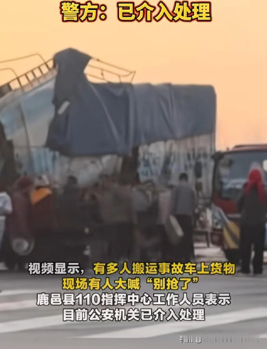 哄抢翻车货物寒了心。 抢的是生计,丢的是底线。 车祸已是横祸,哄抢更是雪上加霜。当货车司机从变形的驾驶室爬出来,面对的不是援手而是蜂拥而上的人群,声嘶力竭的“别抢了”被置若罔闻,这样的场景既刺眼又心寒——散落的是日化、冻品或果蔬,背后却是司机全家的生计,可能是一趟奔波的血汗钱,甚至是背负的债务。 这些哄抢者笃信“法不责众”,却忘了法律从无例外。《治安管理处罚法》明确哄抢公私财物可处拘留罚款,《刑法》更是将聚众哄抢情节严重者纳入刑事追责,最高可判十年有期徒刑 。河南鹿邑警方此次拘留5人、追回全部货物的处置,正是对“法不责众”谬论的有力驳斥:法治社会里,没人能靠“人多”逃避责任 。 更可悲的是,这种趁火打劫抢走的不只是财物,更是社会的公序良俗。当有人为了一箱香皂、几袋冻品,就丢掉共情与底线,把他人的不幸当成自己的“便宜”,破坏的是人与人之间最基本的信任。反观安阳滑县市民主动扫码购买侧翻货车的饮料,同样是面对散落货物,有人趁火打劫,有人雪中送炭,这背后正是文明与自私的分野。 遏制哄抢,既要靠执法“亮剑”,让每一次违法都付出代价;更要靠人心“守界”,让“君子爱财取之有道”成为共识。别让货车司机躲过了车祸,却躲不过人心的劫掠,这不仅是对受害者的保护,更是对社会文明底线的守护。