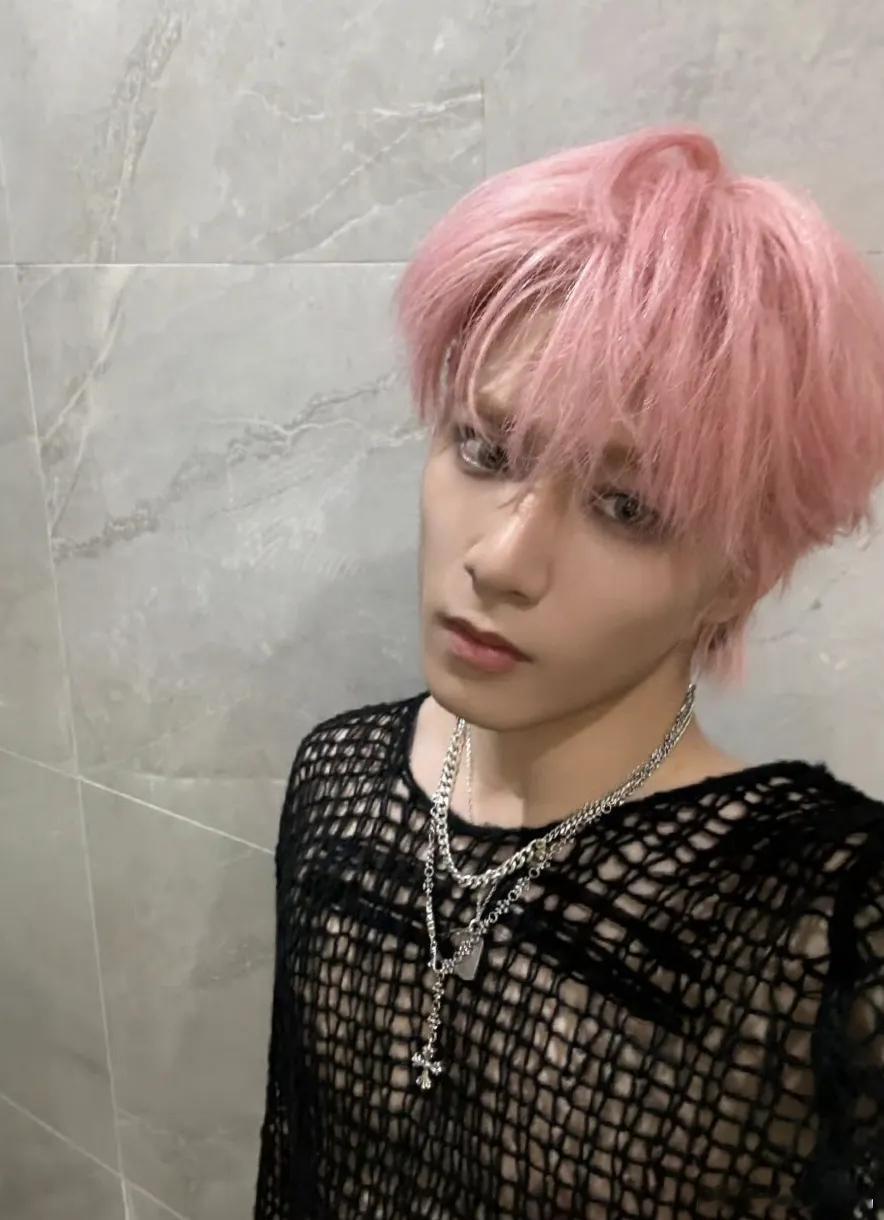 刘耀文穿的镂空大网眼T恤,搭配粉色发型,这穿搭年轻人或许觉得带劲,可年长些的阿姨们怕是不太能接受。