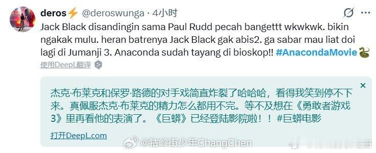 好莱坞喜人有自己的一见钟情 保罗和杰克的组合像命中注定,一个眼神就有戏。电影里他们把惊悚IP玩成恶搞盛宴,搞笑天赋完全压制了巨蟒的存在感。