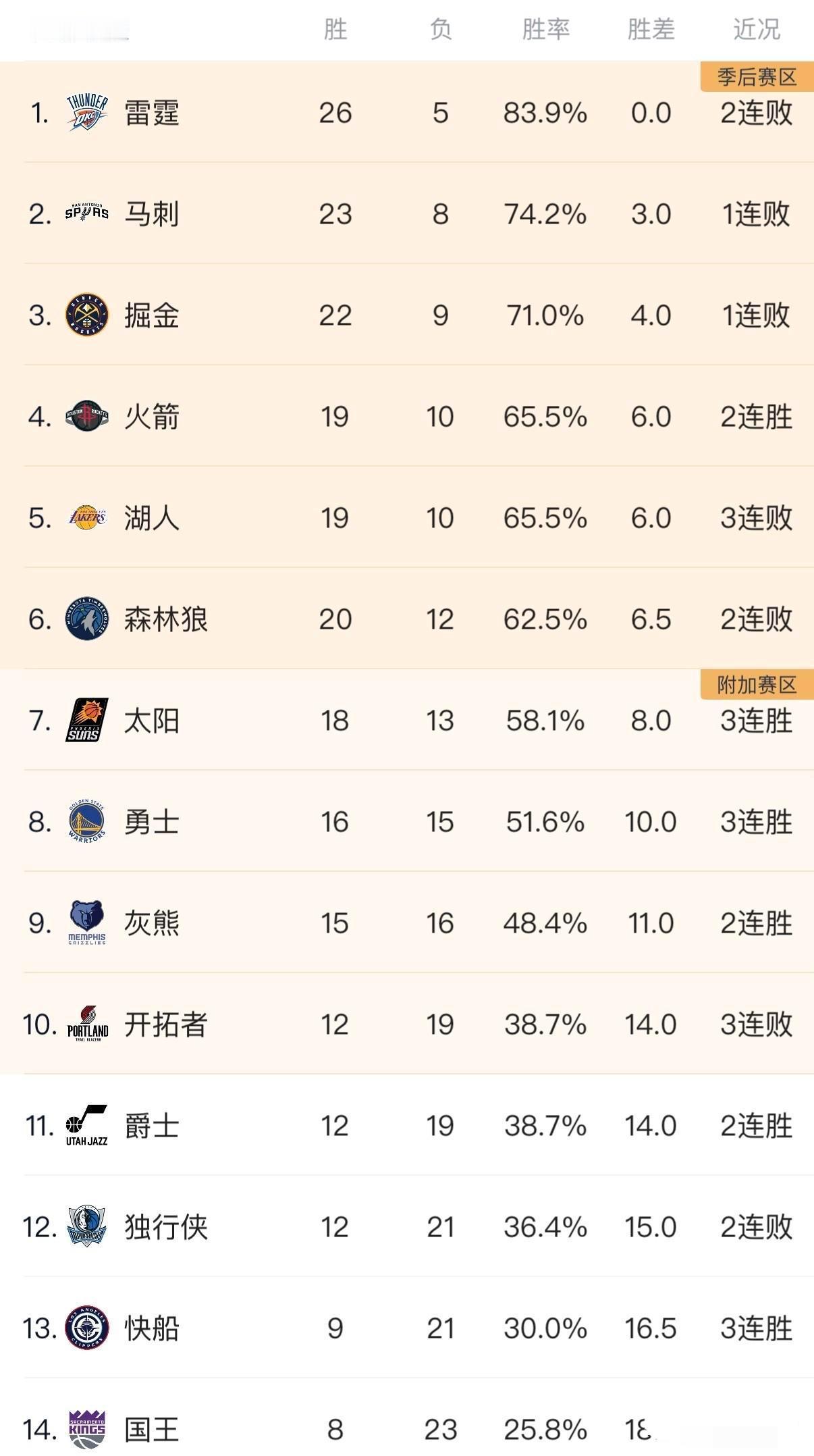 西部排名又乱了!今天随着掘金惜败魔术,火箭大胜骑士,森林狼被篮网逆转,马刺被爵士