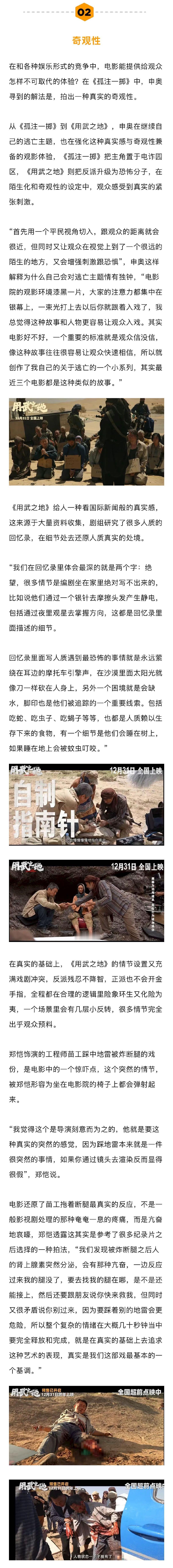 申奥回应高产 郑恺谈踩地雷戏 决定参演《用武之地》前,齐溪曾有过一些忐忑。在《孤注一掷》和申奥合作过的王传君告诉妻子:放心,导演不会过分消耗演员的。后来,这也成为演员们共同的感受,一场戏拍摄一到两条是常态,基本上不超过三条。申奥高效的秘诀在于用剪辑的思维去拍摄电影,不会贪多,更不会消耗演员和浪费人力物力…娱理独家↓
