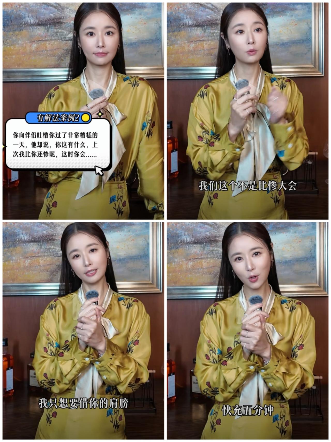 林心如真的把“撒娇女人最好命” 做到了极致, 而霍建华 就是能稳稳接住。 林心如好不容易完成了大扫除, 霍建华不知道她的辛苦, 还抱怨她又慢, 换作是他早就完成了。 她一点都不生气, 慢悠悠的说“我这不心疼你吗?下次……” 林心如向霍建华抱怨自己糟糕的一天, 霍建华强调自己更加惨。 林心如脸不改色, 慢慢靠近老公的肩膀, 柔声说“借借肩膀,快充五分钟” 虽然以上两种均为假设, 但是林心如会撒娇来解决冲突, 却是真真切切。 其实我一点不认同 “撒娇女人最好命”。 您看, 如果林心如柔声撒娇, 结果换来的却是霍建华的 一脸嫌弃的拍拍肩膀说“滚”。 这样的撒娇还有用吗? 哎呀, 其实不是撒娇女人最好命, 而是有一个可以稳稳接住 女人撒娇的男人才是前提。 而林心如找到了那个可以 稳稳接住她撒娇的霍建华。