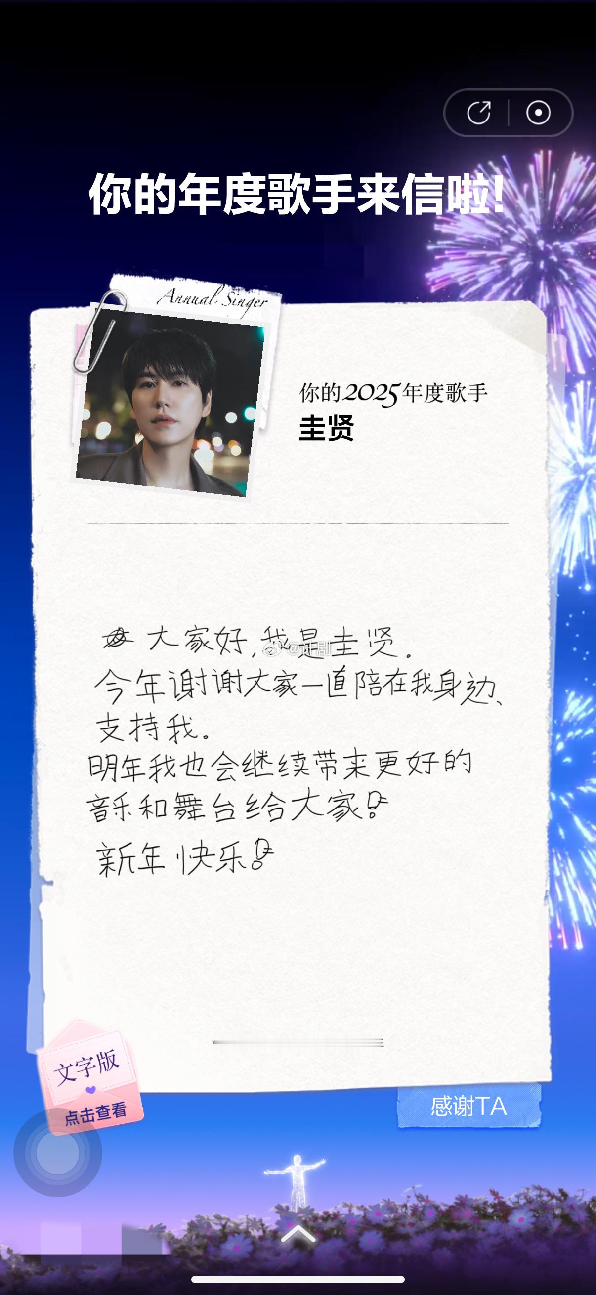 年度歌手手写信 张杰那封手写信写得又长又认真,像是在和歌迷好好聊了一整年,字里行间都是真诚和感谢,这种把大家放在心上的感觉,真的很让人感动。