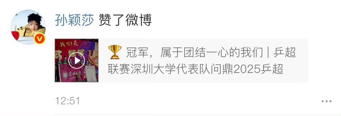 莎莎最新动态,点赞👍🏻深大赞孙颖莎是不可或缺的精神力量
