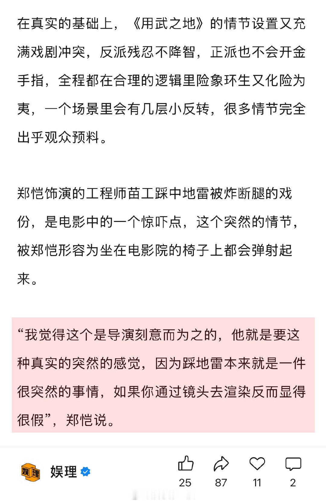 申奥回应高产 郑恺谈踩地雷戏 申奥谈逃亡主题创作:“电影院的观影环境漆黑一片,大家的注意力都集中在银幕上,一束光打上去以后你就跟着入戏了,我总觉得这种故事和人物更容易让观众入戏。其实电影好不好,一个重要的标准就是观众信没信,像这种故事往往很容易让观众快速相信,所以就创作了我自己的关于逃亡的一个小系列,其实最近三个电影都是这种类似的故事。”娱理独家↓