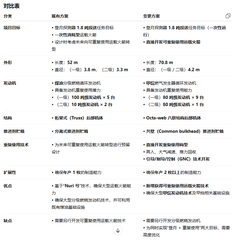 韩国将正在开发的复用火箭从液氧煤油改为液氧甲烷燃料,韩国KASA(KASA)于12月22日表示,针对下一代运载火箭提前实现可重复使用化的方案,其项目计划适当性重新审查结果已完成审议并获得通过,确定将以甲烷推进剂为基础,研发可重复使用运载火箭。该方案的总项目经费确定为2万2920.9亿韩元(约16亿美元),较原计划增加2788.5亿韩元(约两亿美元)。新增预算中的大部分资金将用于:甲烷推进剂相关的试验设施建设和可重复使用关键核心技术的研发在任务进度方面:首次发射(发射用于验证月球轨道注入性能的验证卫星)将从原计划的2030年推迟至2031年;第二次发射(发射月球着陆器 PFM〔原型飞行模型〕)将从2031年推迟至2032年;第三次发射任务(发射月球着陆器最终型号)仍维持在2032年不变。韩国目前拥有的“世界”号(Nuri)运载火箭只能将 1.5~2 吨级卫星送入近地轨道,无法将卫星送入距地 3.6 万公里的地球静止轨道(GEO)。而地球静止轨道是衡量运载火箭能力的重要分水岭——通信、广播、气象卫星的核心轨道,军用通信卫星也主要部署在此,因此直接关系到国家安全。韩国现有的 GEO 卫星以“千里眼”气象卫星为代表,但尚无法依靠国产运载火箭发射。韩国下一代运载火箭的最初方案,原本就是以“猎鹰9”那样的可重复使用运载火箭为目标,但在预研阶段判断认为,稳定获得中大型运载火箭能力极其重要,因此将项目分为当前项目与后续项目两阶段。计划是在 2032 年前开发基于煤油的分级燃烧循环中大型运载火箭和部分可重复使用技术,之后再通过其他项目实现系统级重复使用。不过KASA主张改用甲烷推进剂,并直接开发可重复使用运载火箭,目标是 2035 年将运输成本降至每公斤 2500 美元(约 350 万韩元),以此支撑 6G、卫星互联网等下游产业。不少韩国专家对KASA的方案持怀疑态度,担心过度押注甲烷可重复使用技术,反而拖慢中大型运载火箭进度。虽然多数专家认同甲烷发动机的技术优势:推力比煤油高约 10%、燃烧更清洁、几乎不积碳,更适合重复使用但反对者指出:甲烷技术难度高、韩国甲烷发动机经验不足,目前韩国掌握的甲烷发动机规模仅 3 吨级,甲烷密度低,需要更大的低温储罐,现有基础设施均基于煤油地理条件也被认为是韩国推进可重复使用运载火箭的天然劣势。SpaceX 能在开阔海域回收一级助推器,而韩国:东侧是日本列岛,南侧是琉球及密集岛屿主流方案是:一级助推器在经过琉球前逆推返航,于济州岛南部与琉球之间海域由驳船回收,但这样需要消耗更多燃料,使得有效载荷下降,还涉及国际协调与安全问题,海上回收维护成本高KASA为了防止推进剂浪费,目前考虑的方法是在火箭飞抵琉球之前,在济州岛南部与琉球之间的海域回收一级助推器。该方案中,一级火箭几乎进行垂直飞行后分离,分离后的二级火箭与地面形成约30至40度 的夹角,自然地进行水平机动,从而进入目标轨道。这种级间分离方式虽然与“世界号”(Nuri)火箭相似,但其独特之处在于:它选择了一种“少用一级、多用二级”的轨迹。即一级火箭在发射点附近上空停留后坠落,而进入轨道的动力全由二级火箭产生。KASA认为,尽管存在诸多困难,但这种技术完全可以实现。KASA相关人士表示:“从初步设计阶段开始,为了不让火箭掉落在琉球等地,我们就重新计算了一、二级助推器的推进剂装载量,并制定了事业计划变更案,以便在技术上控制落点。这类似于猎鹰9号(Falcon 9)在无人船上着陆的方式,即在琉球之前通过无人船回收分离的助推器。”他还补充道:“我们将把‘世界号’使用的火药分离方式改为猎鹰9号的‘推杆(Push Rod)’方式,以提高重复使用性。”所谓“推杆”方式,是指利用压力或机械装置平稳地推开级间段进行分离的方法。也有指责认为,KASA的方案没有考虑到“技术发展阶段”。以 SpaceX 为首,以及俄罗斯、中国等,都是遵循“消耗型火箭 → 一级助推器可回收的部分重复使用火箭 → 二级助推器也可回收的完全重复使用火箭”的技术路径,最终目标大多定为完全重复使用。专家们指出,KASA将最终目标设定为像猎鹰9号那样的“部分重复使用火箭”,这是一个问题。要实现向完全重复使用火箭的转型,设计理念、火箭材料、功能等必须有根本性的不同,还需要通过制造工艺革新来降低成本,而这些思考在KASA的方案中并未体现。SpaceX 在开发重复使用火箭的过程中,致力于制造工艺革新,如开发基于 3D 打印的材料、最大程度减少焊接等,以此降低成本。目前,SpaceX 正在开发完全重复使用火箭“星舰”(Starship)。一位熟悉下一代运载火箭开发事业情况的韩国专家表示:“如果不做彻底准备,开发重复使用火箭反而会导致亏损。在‘世界号’的技术成熟度仅为 4 分(满分 10 分)的情况下,主张通过运载火箭确保经济性,只有在技术成熟度达到一定高度时才可行。”另一位专家则直言,KASA的方案无法验证火箭的“重复使用性”。他尖锐地指出:“KASA方案中包含的发射任务全部以‘消耗型’方式运行,并未包含‘重复使用火箭的试飞’。要在下一个事业阶段才进行首次重复使用试飞,这令人担忧:名义上标榜重复使用,实际上却作为消耗型结束,最终开发出的是未经验证的‘半吊子’火箭。”