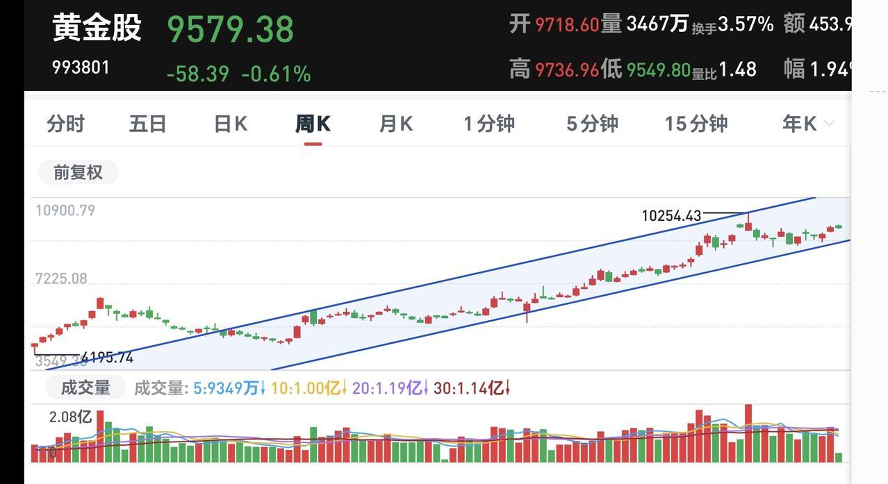 基金:黄金板块可不可以继续持有 黄金板块今天是下跌,现在盘中估值下跌了0.33%,这个板块今天加仓排行榜见下面的截图2,持有人数排行榜见下面的截图3,排名第一的都是国泰黄金ETF。 我们来看一下下面的截图4,这是黄金板块日K线图,从图中可以看出,我画了一条倾斜向上的斜线,这是黄金板块日线级别上涨趋势线,现在的位置处于这条上涨趋势线的上方,也就是说,黄金板块日线级别处于上涨趋势中,只要不跌破这条上涨趋势线,持有的人就可以继续持有。 我们来看一下下面的截图5,这是黄金板块周K线图,从图中可以看出,我画了两条倾斜向上的斜线,这是黄金板块周线级别上涨通道,现在的位置处于这个上涨通道内,也就是说,黄金板块周线级别处于上涨趋势中,持有的人只要不跌破这个上涨通道的下轨,就可以继续持有。 当天的涨跌不是进场和离场的标准,我们要看它处于上涨趋势还是下跌趋势中,趋势又分为短期趋势和长期趋势,日线级别趋势是短期趋势,周线级别趋势是长线趋势,短线持有的人观察日线级别趋势线,长线持有的人观察周线级别趋势线。 我每天都会分享我的观点,我的观点只代表我个人的看法,不能作为你操作的依据,据此操作后果自负。