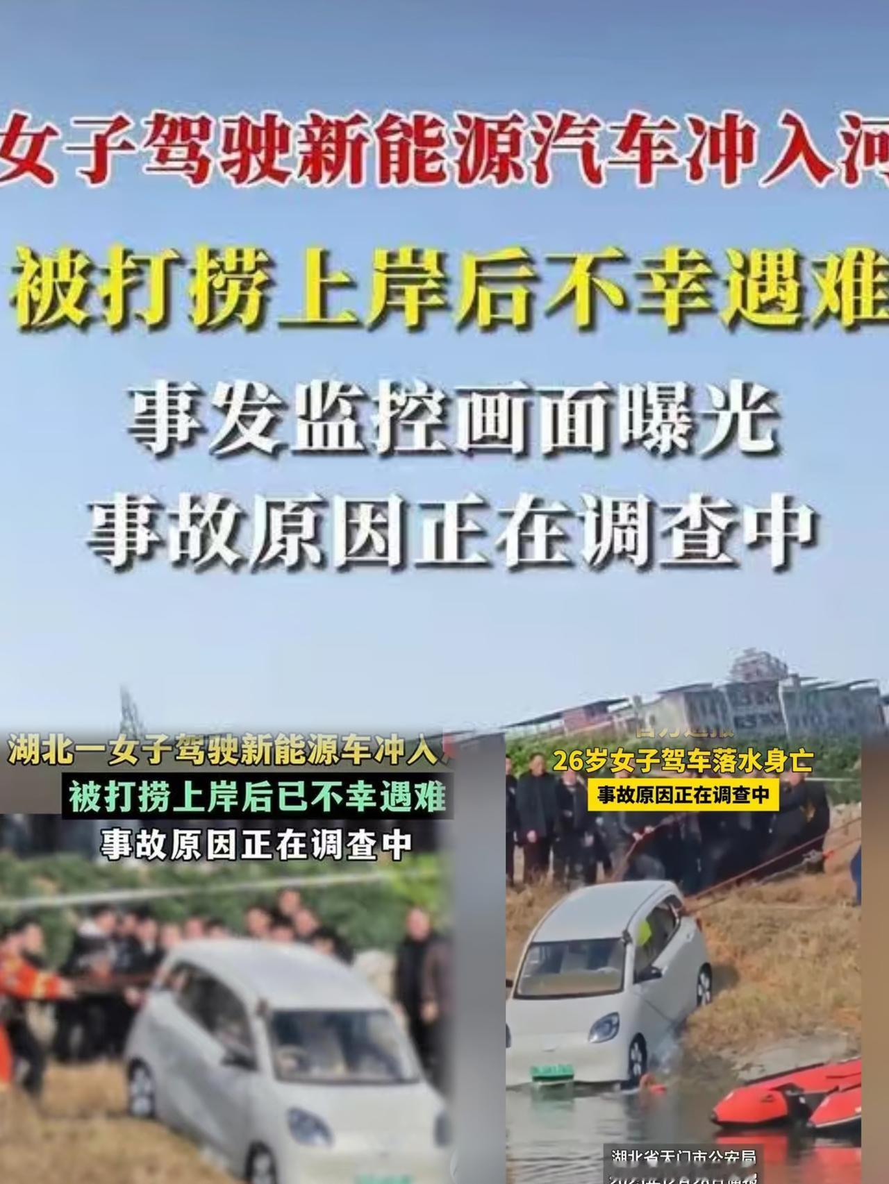 🔥痛心突发!湖北天门26岁姑娘刚提新车2天,清晨驾车直冲下河,8小时后打捞上岸已无生命体征,两次逃生机会全错失! 12月27日早7点,天门市接官路河边,1999年生26岁女子驾新买五菱新能源车出门,刚起步就失控冲离车道,碾过绿化带、冲破护坡一头扎进河道,监控拍下全程8秒惊魂瞬间,车辆刹车灯全程未亮,疑似新手慌乱错把油门当刹车! 事发清晨河边无人,直到下午2点多才被发现,救援人员耗时数小时捞起车辆,女子早已在冰冷河水中没了呼吸;更让人扼腕的是,她本有两次活命机会:一是冲坡时三道缓冲带能紧急避险,二是车辆落水后3分钟黄金逃生期车窗还能正常升降,却因极度慌乱错失最后生机! 知情人透露,女子驾照刚拿3个月,新车才提2天,事发前一天还特意练了一整天车,满心期待自驾通勤,谁料酿成惨剧;警方已排除人为因素,正检测车辆性能,初步锁定新手操作失误为主要诱因。 警方紧急提醒:新手务必熟车再上路,临水路段减速慢行;车辆落水先解安全带,30秒内速降窗逃生,别等电路短路再慌神!愿逝者安息,也给所有司机敲醒警钟:生命没有重来的机会!