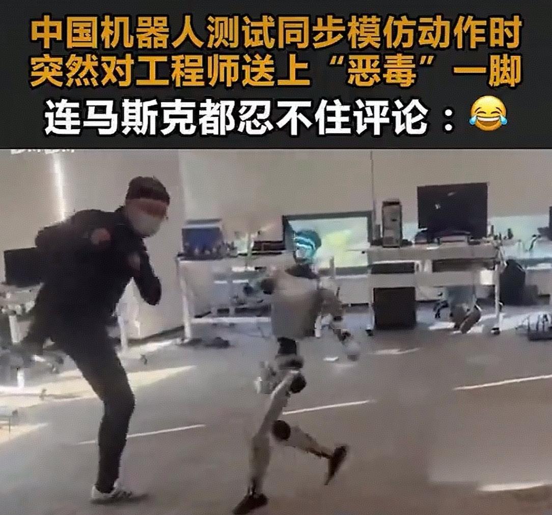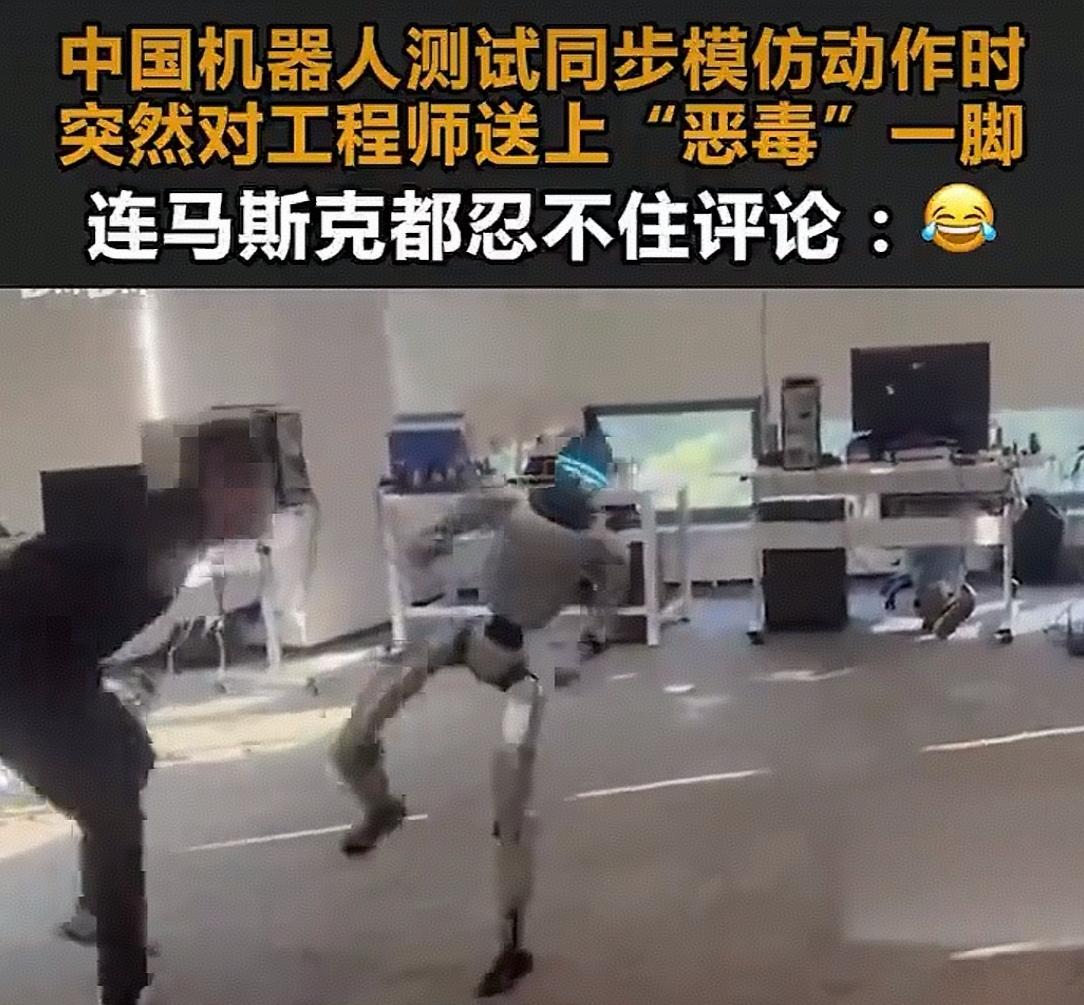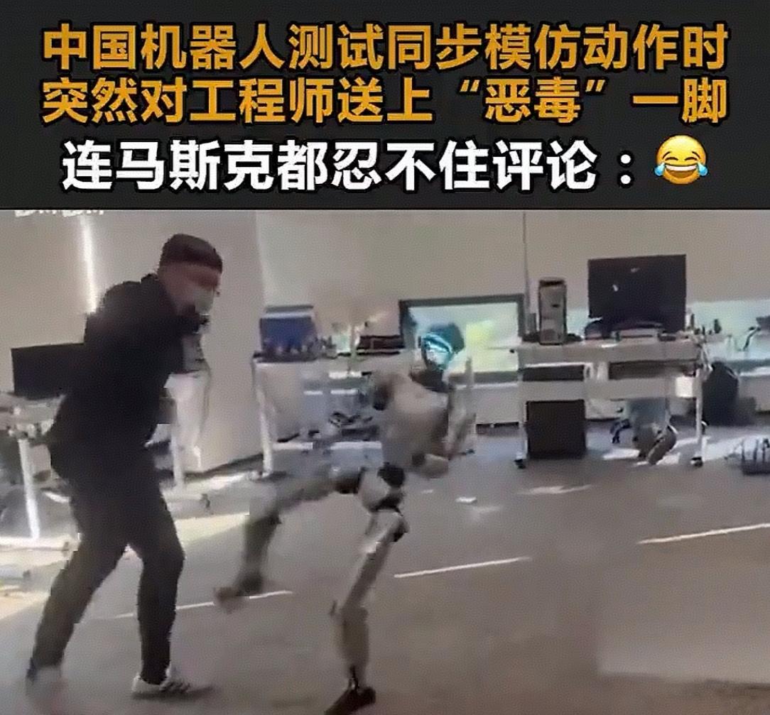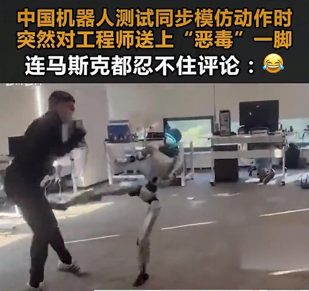 .看了12月27日网上视频。中国宇树G1机器人在同步模仿工程师格斗动作的测试中,由于工程师工作太投入,忽视了与机器人的距离。突然被机器人“恶毒”一脚,这段画面被特斯拉首席工程师转发,连特斯拉都忍不住评论了笑哭表情包,引发网友关注。
