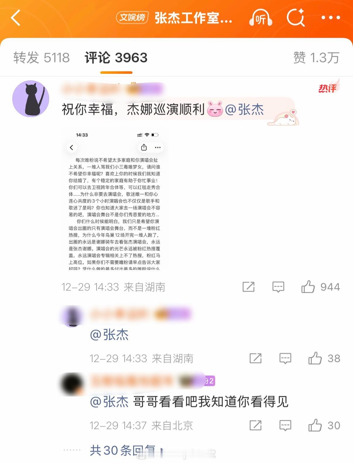 张杰谢娜 双人舞张杰官宣将在演唱会上和谢娜带来双人舞表演,粉丝不仅在张杰工作室评论区表示拒绝,刚刚张杰发博后,评论区粉丝仍然在拒绝,说可以在跨年舞台合体也可以在红毯合体,为什么非要在个人演唱会合体???张杰粉丝这么多年过去了还没有释怀呢
