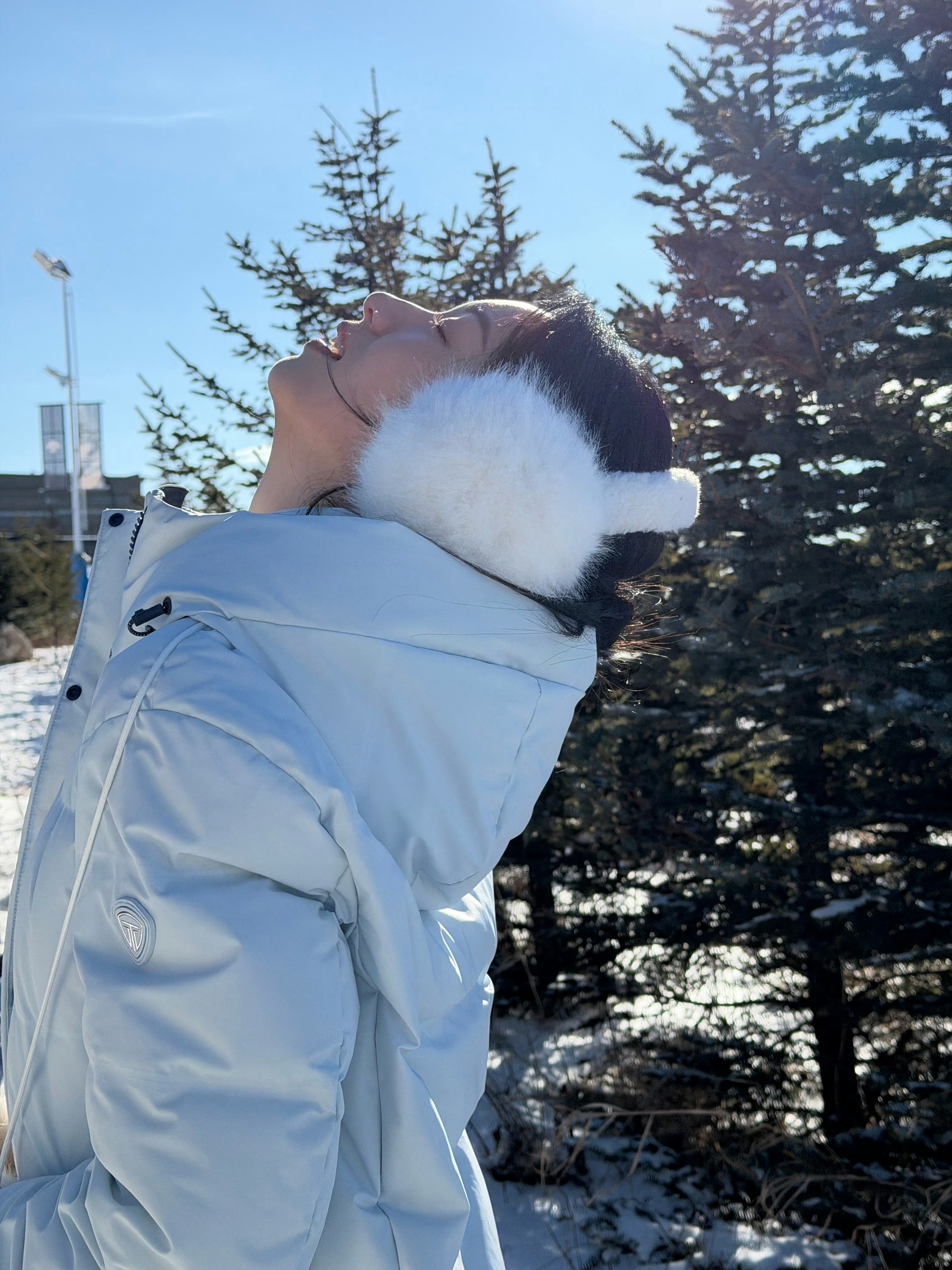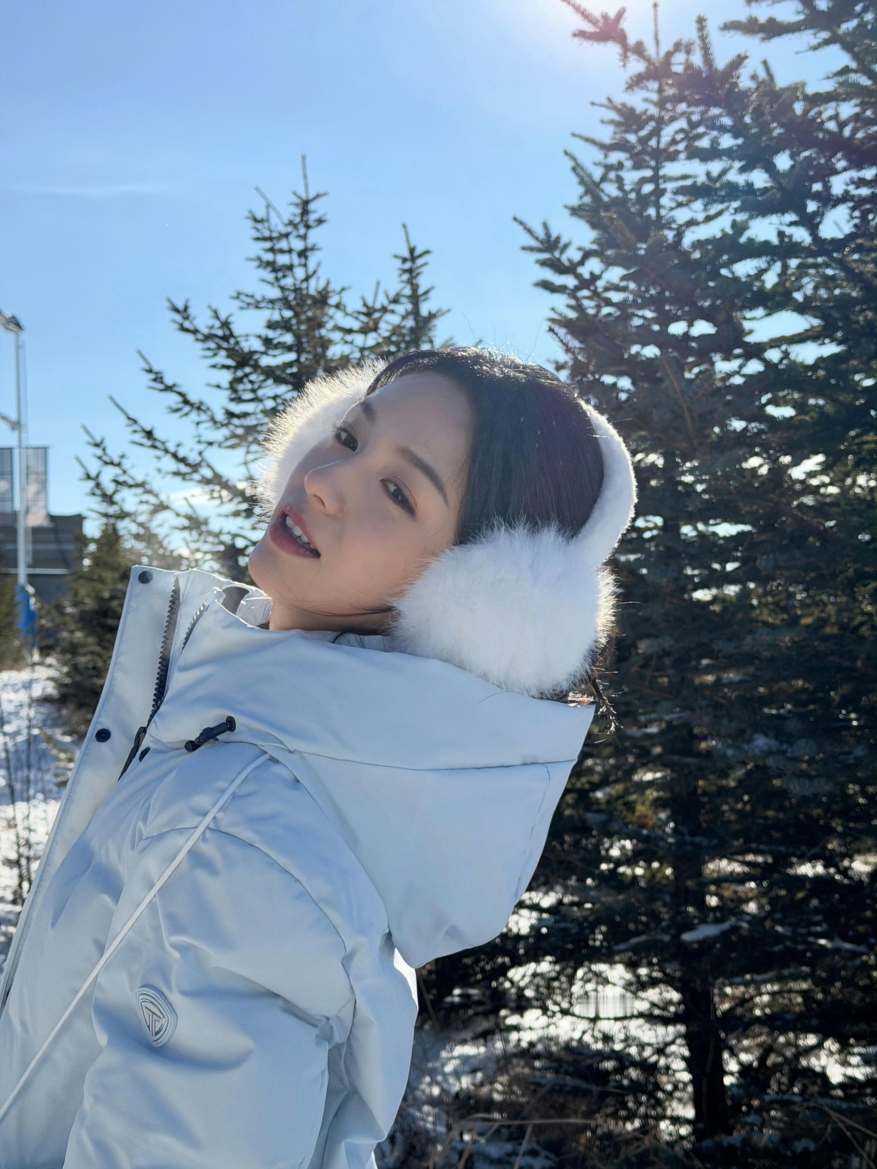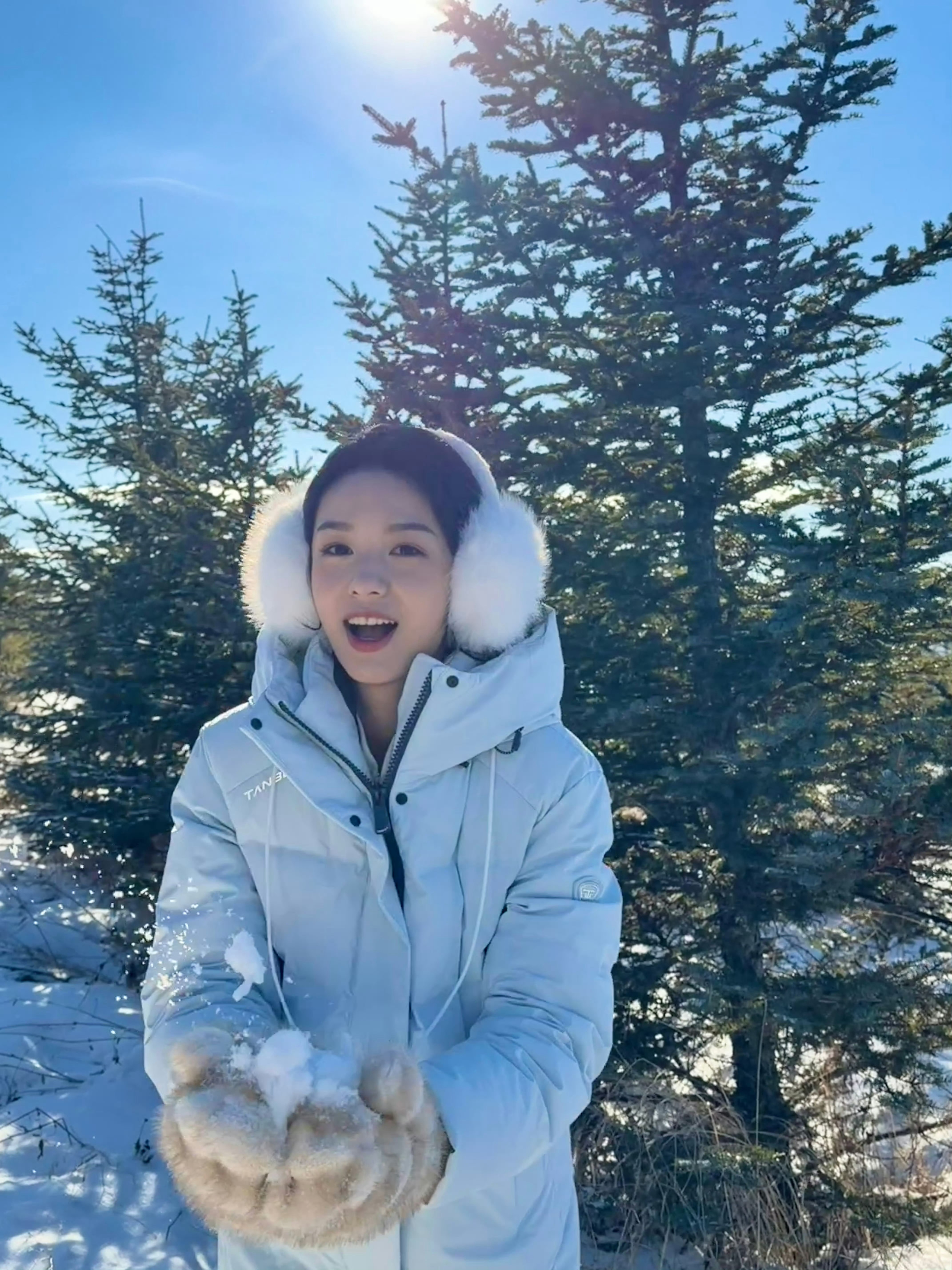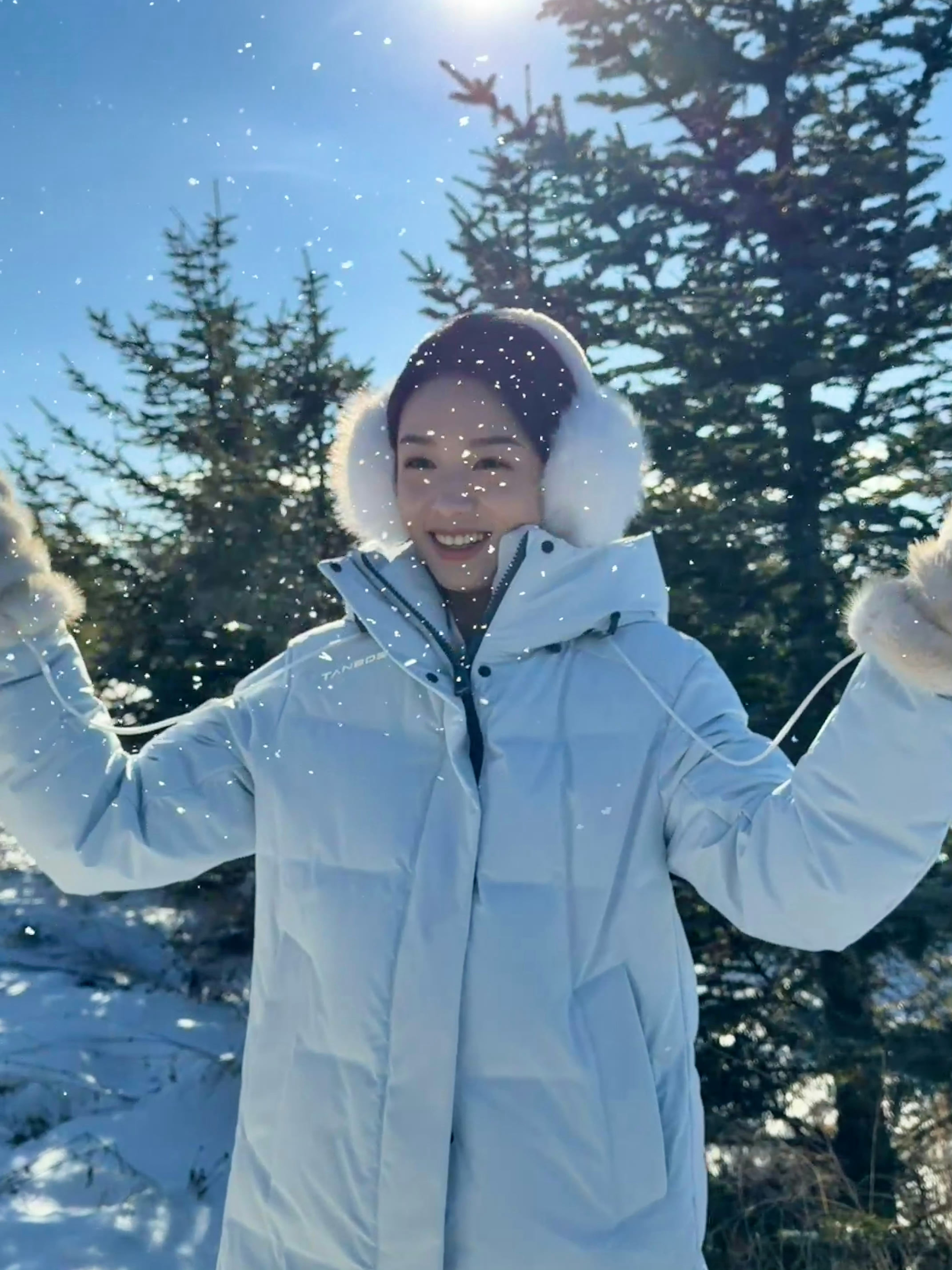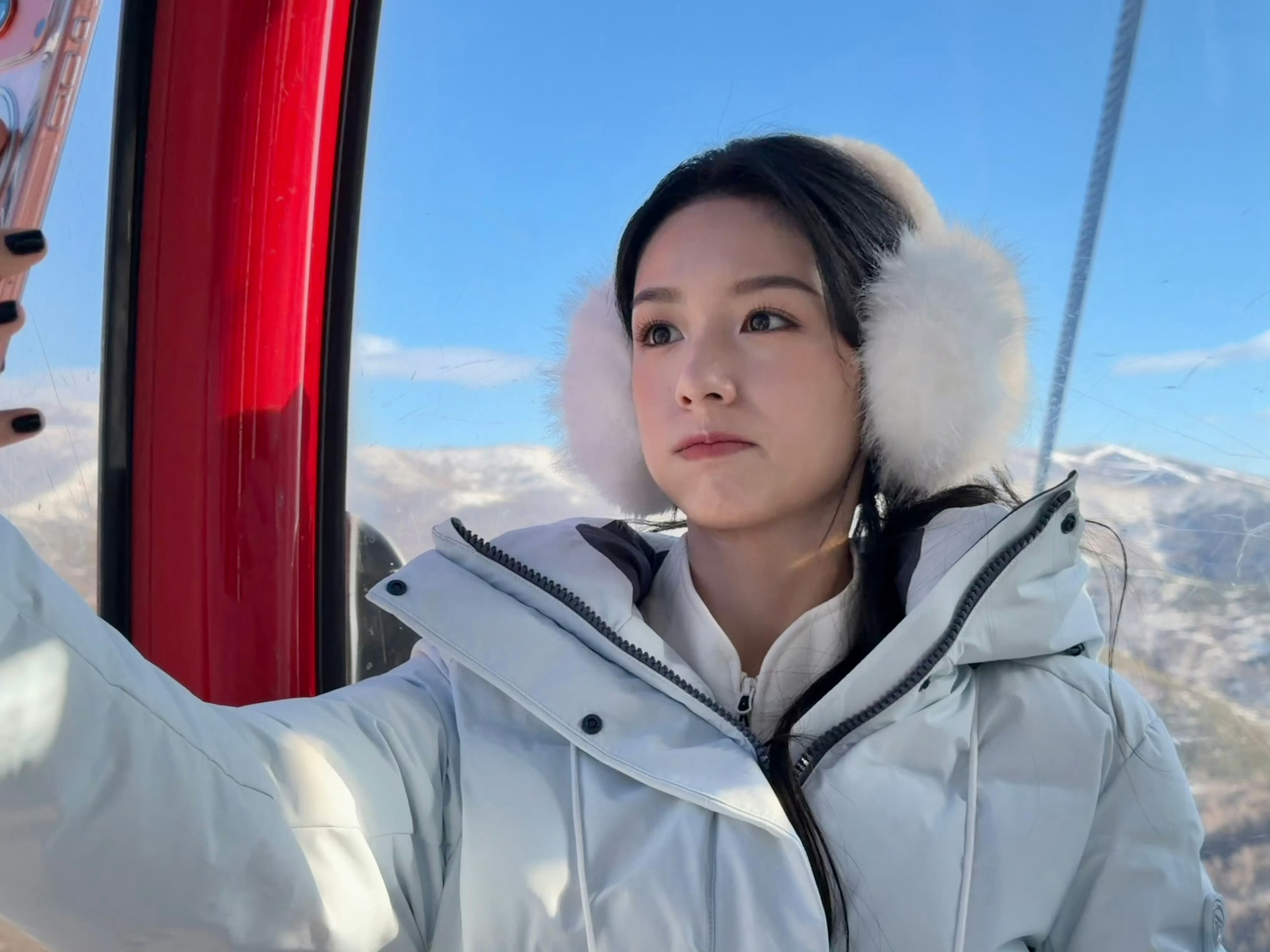 这个在雪场拍摄玩耍的周也美!萌!糯米团子一般的存在